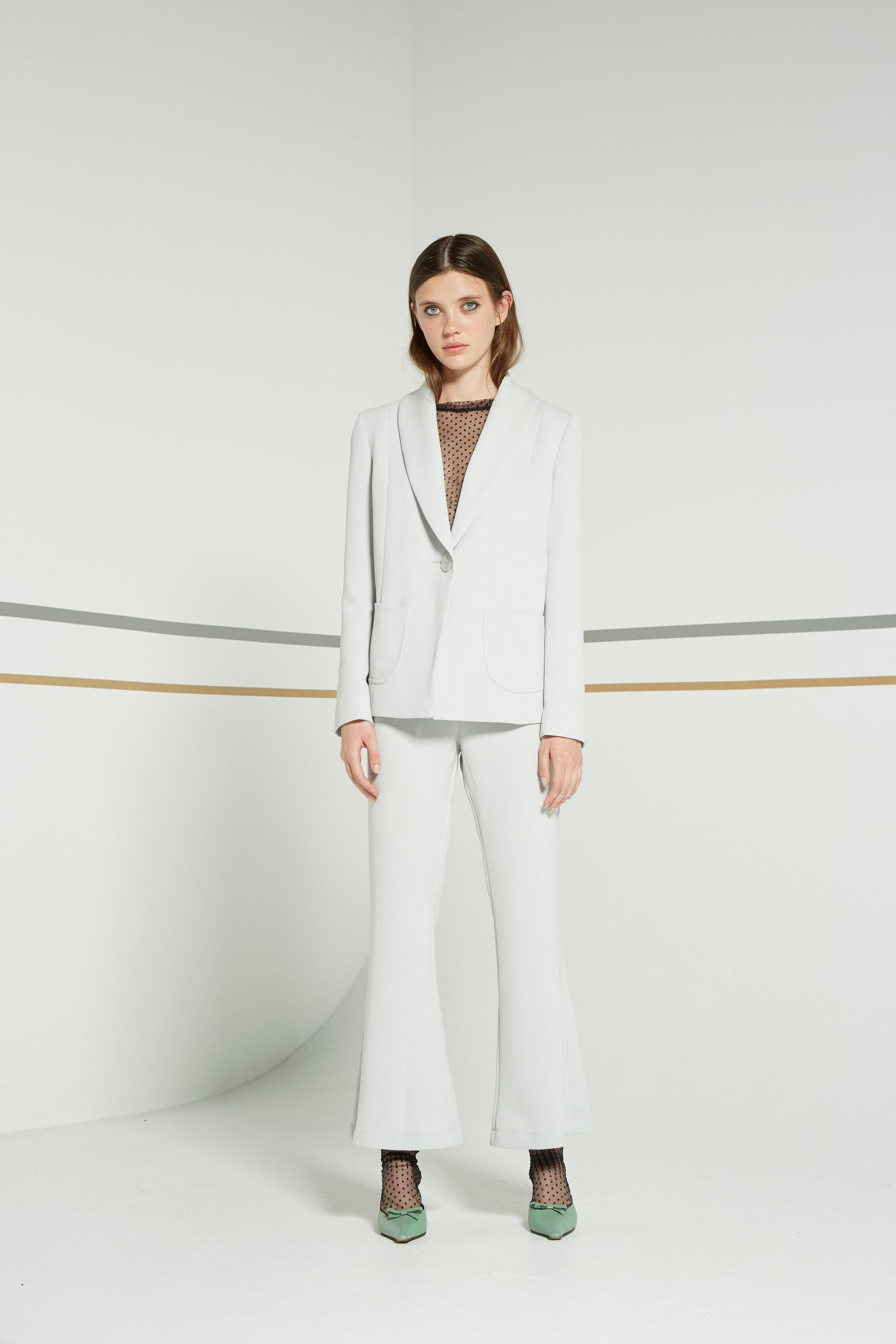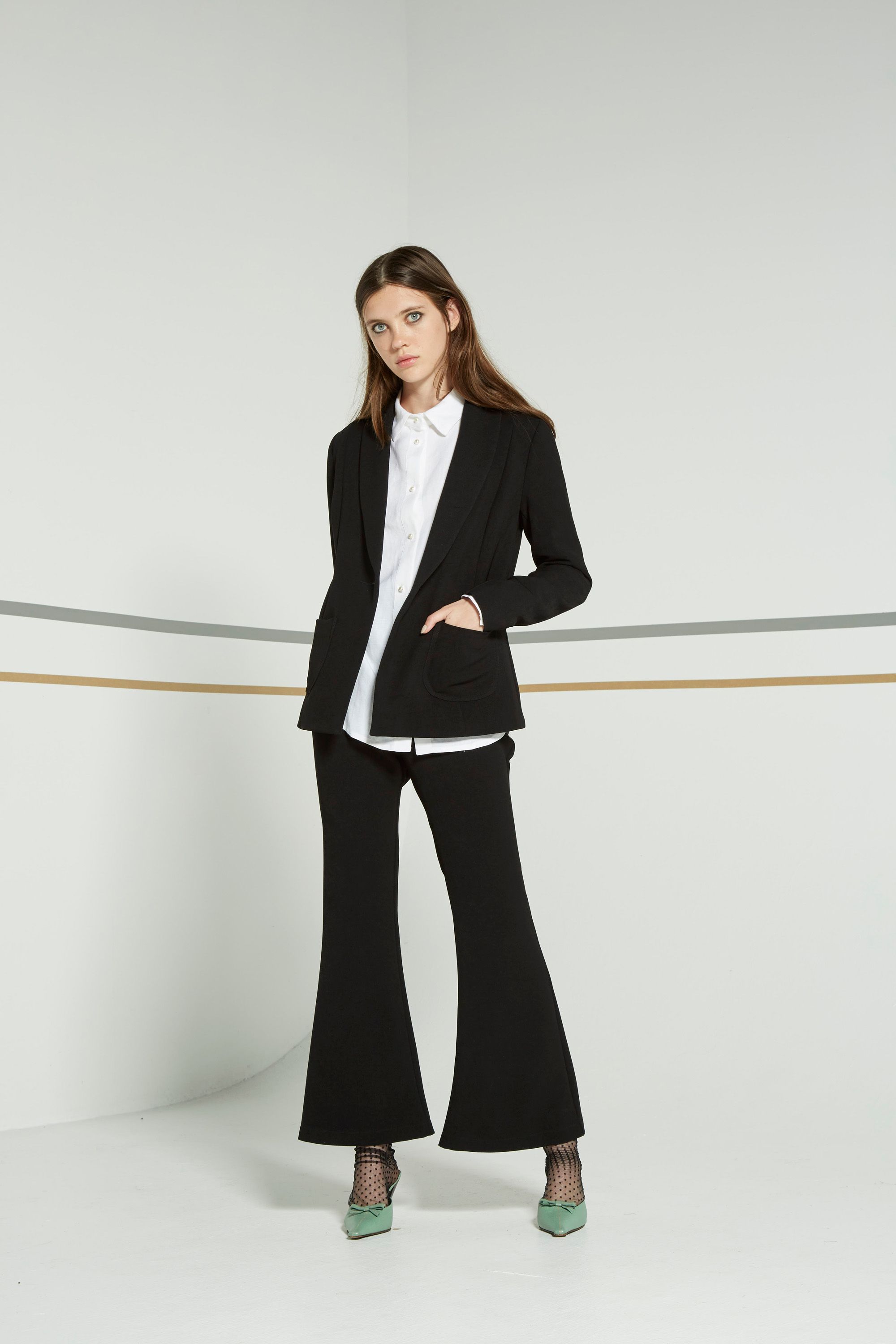 Sleek, smart and trans-seasonal, the Antella jacket is a beautiful tailored fit. Clean lined rounded shawl collar and neatly fitted on the shoulder. Pockets at front. One button to close. Finishes cleanly on the hips. Full length sleeves.