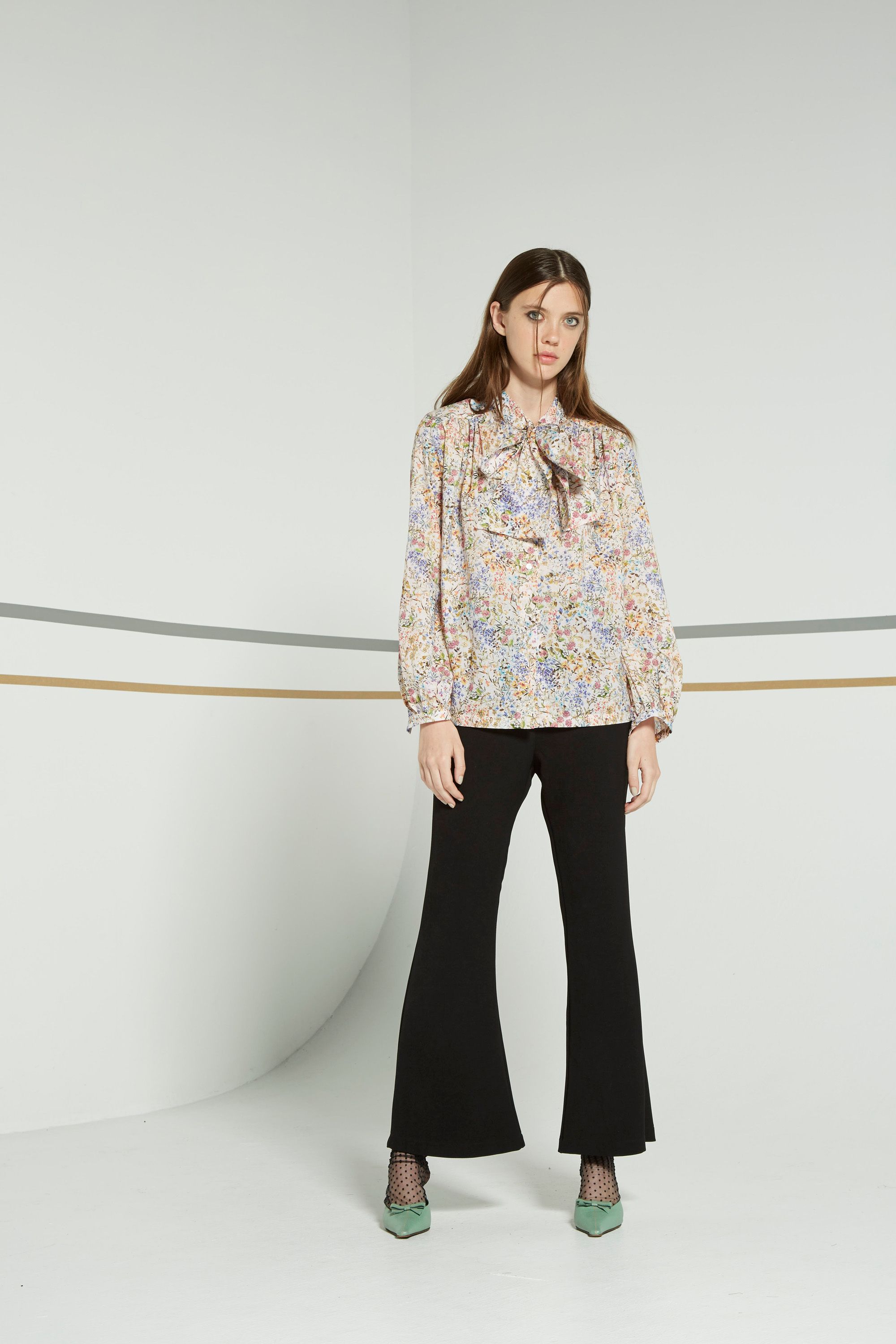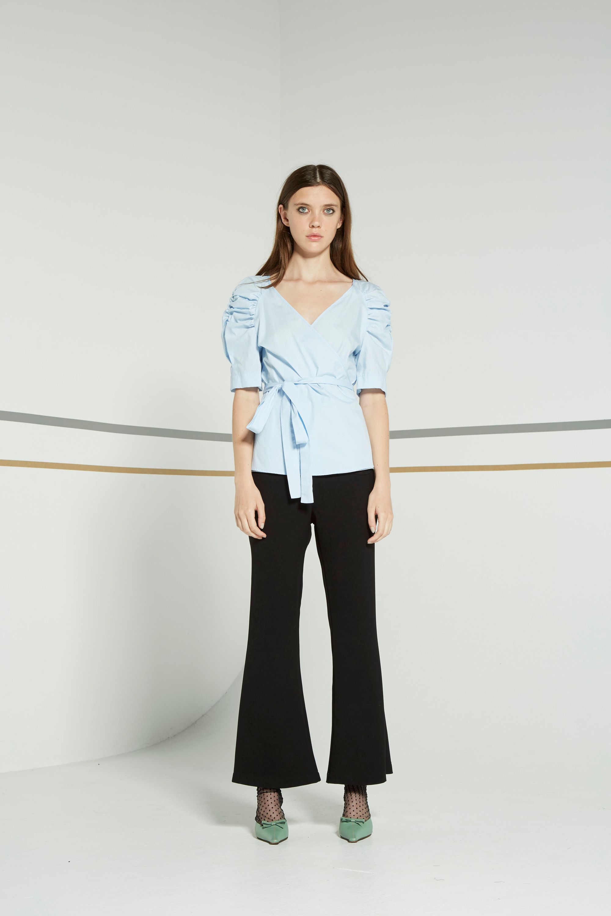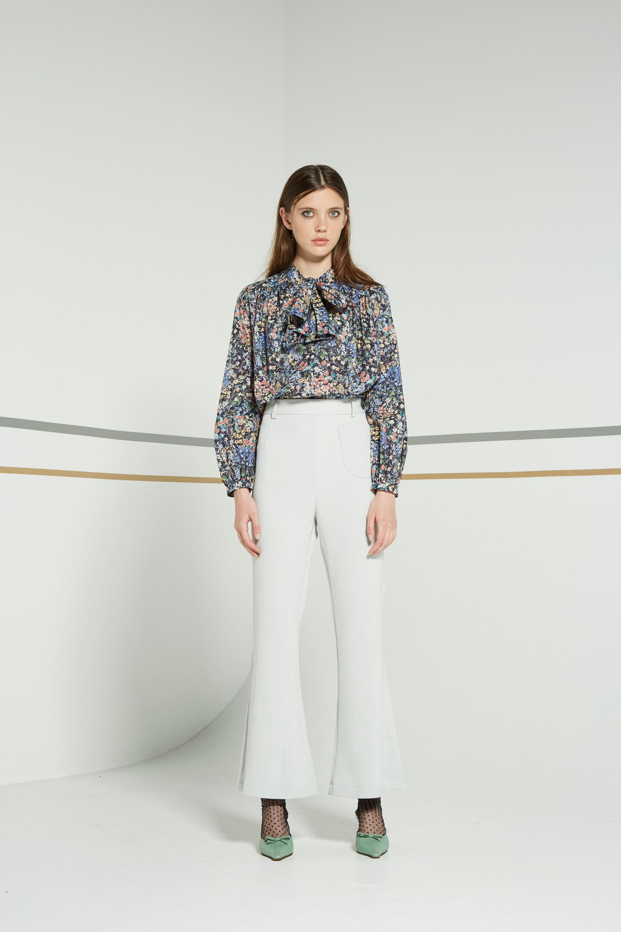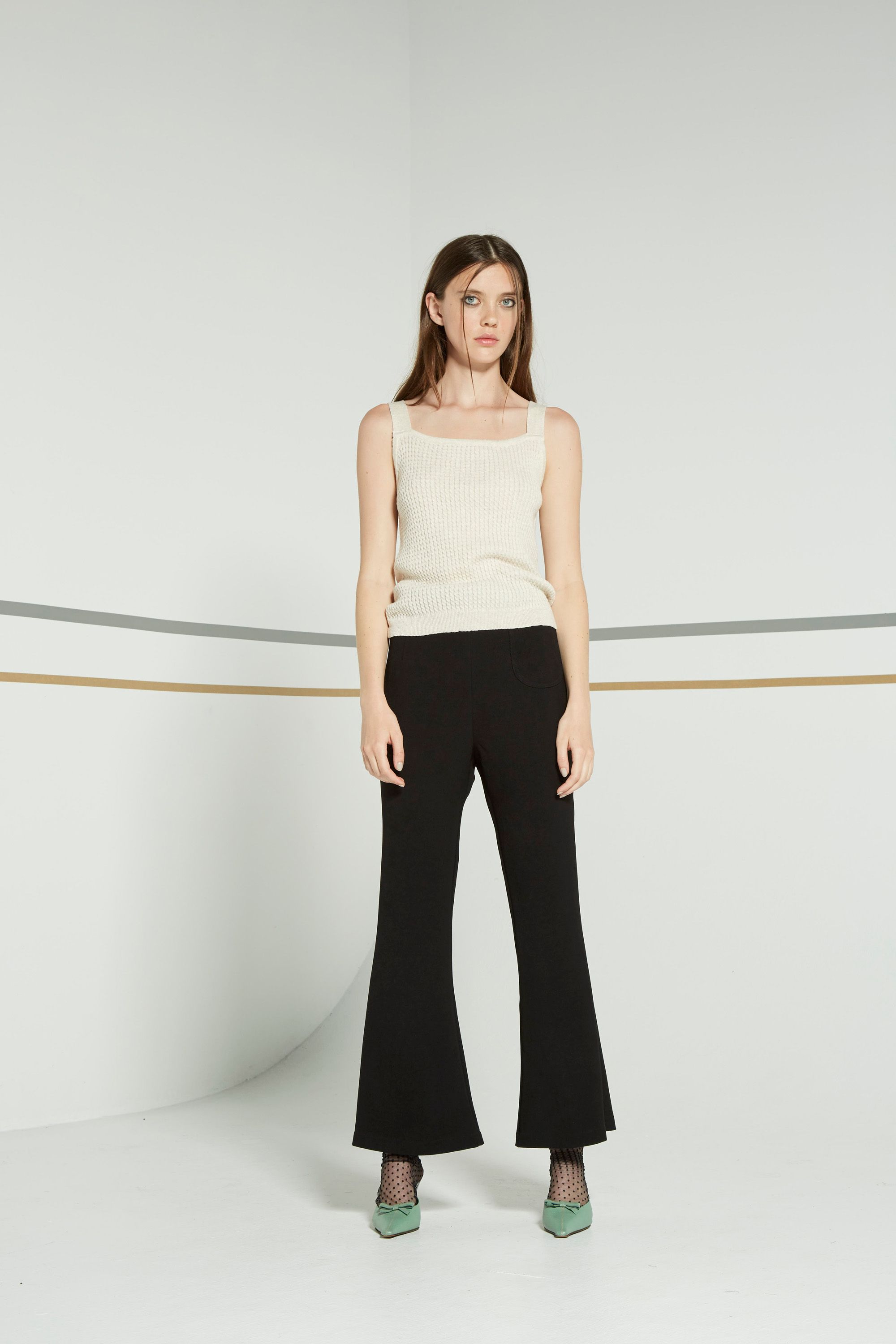 Sleek, smart and trans-seasonal. The Antella pant with its clean lined wide flare at hem. Finishes below ankle. One pocket at front. Belt loops at waist band. Zip at back.