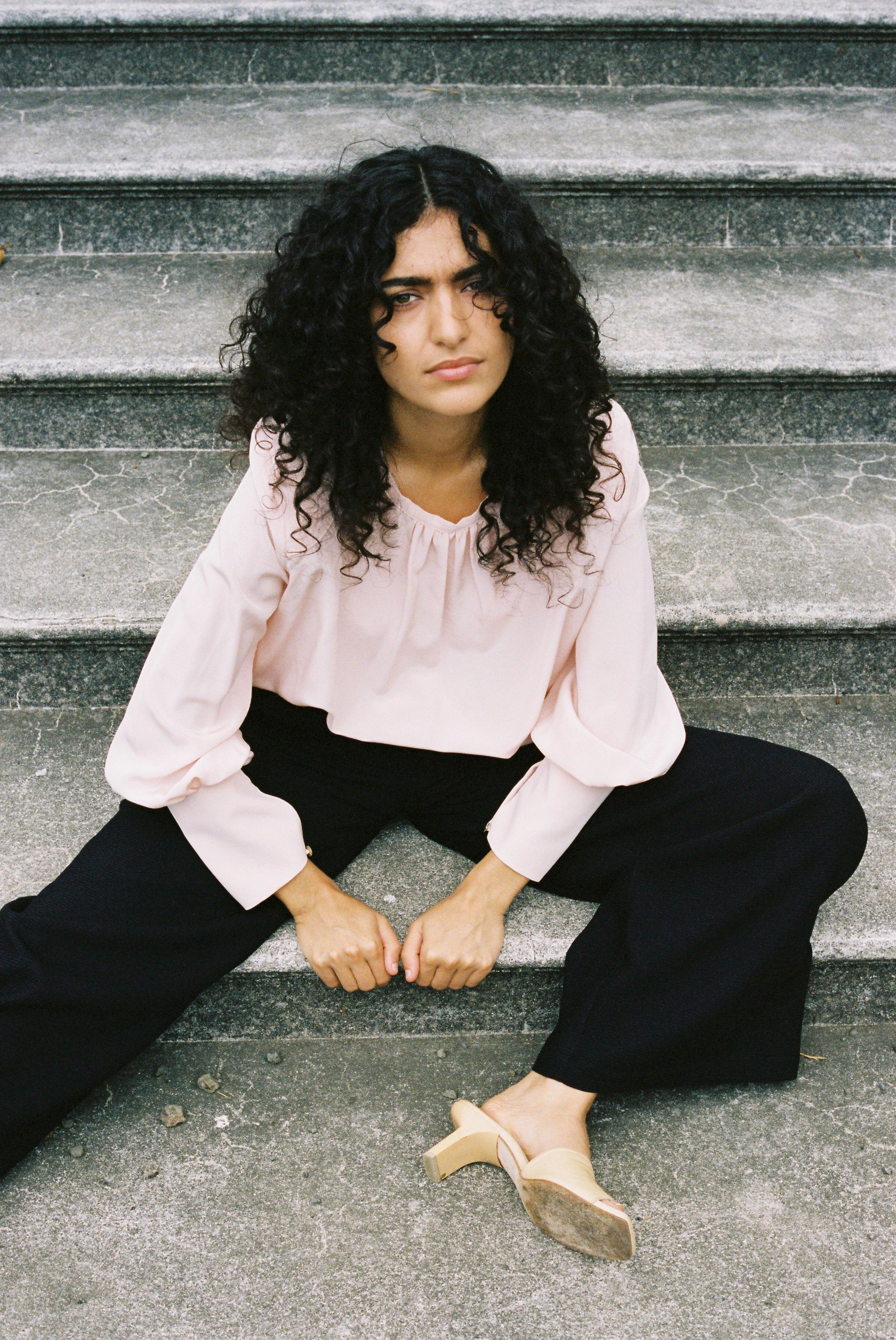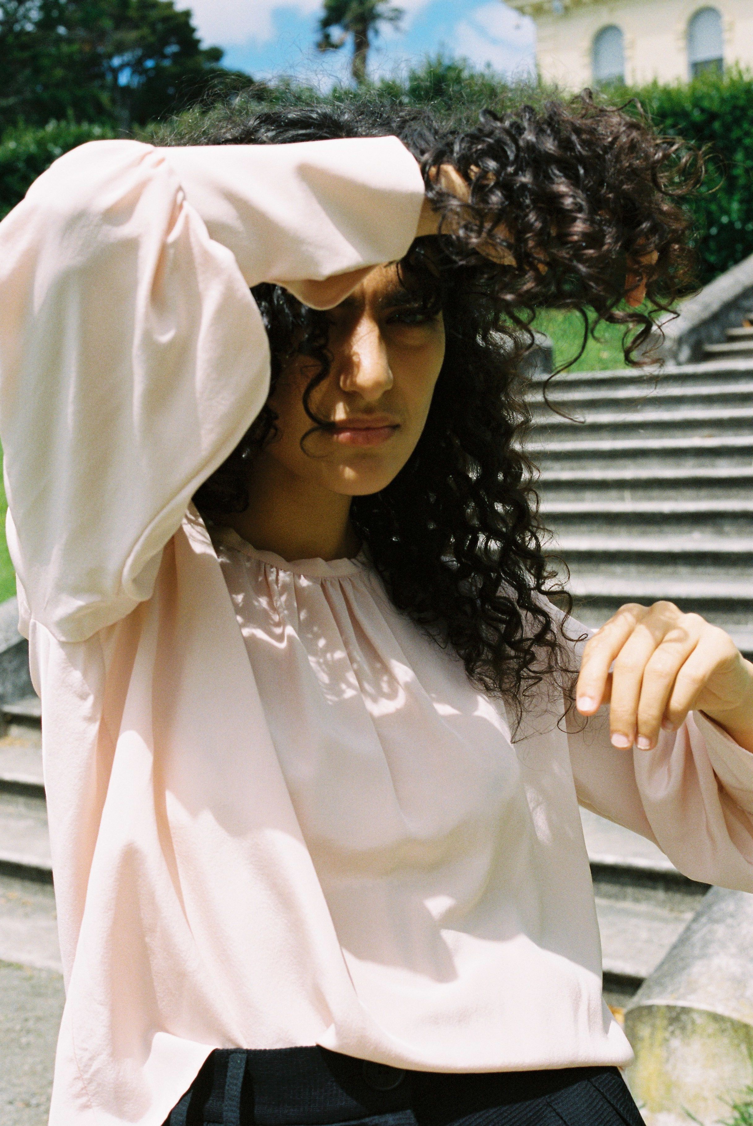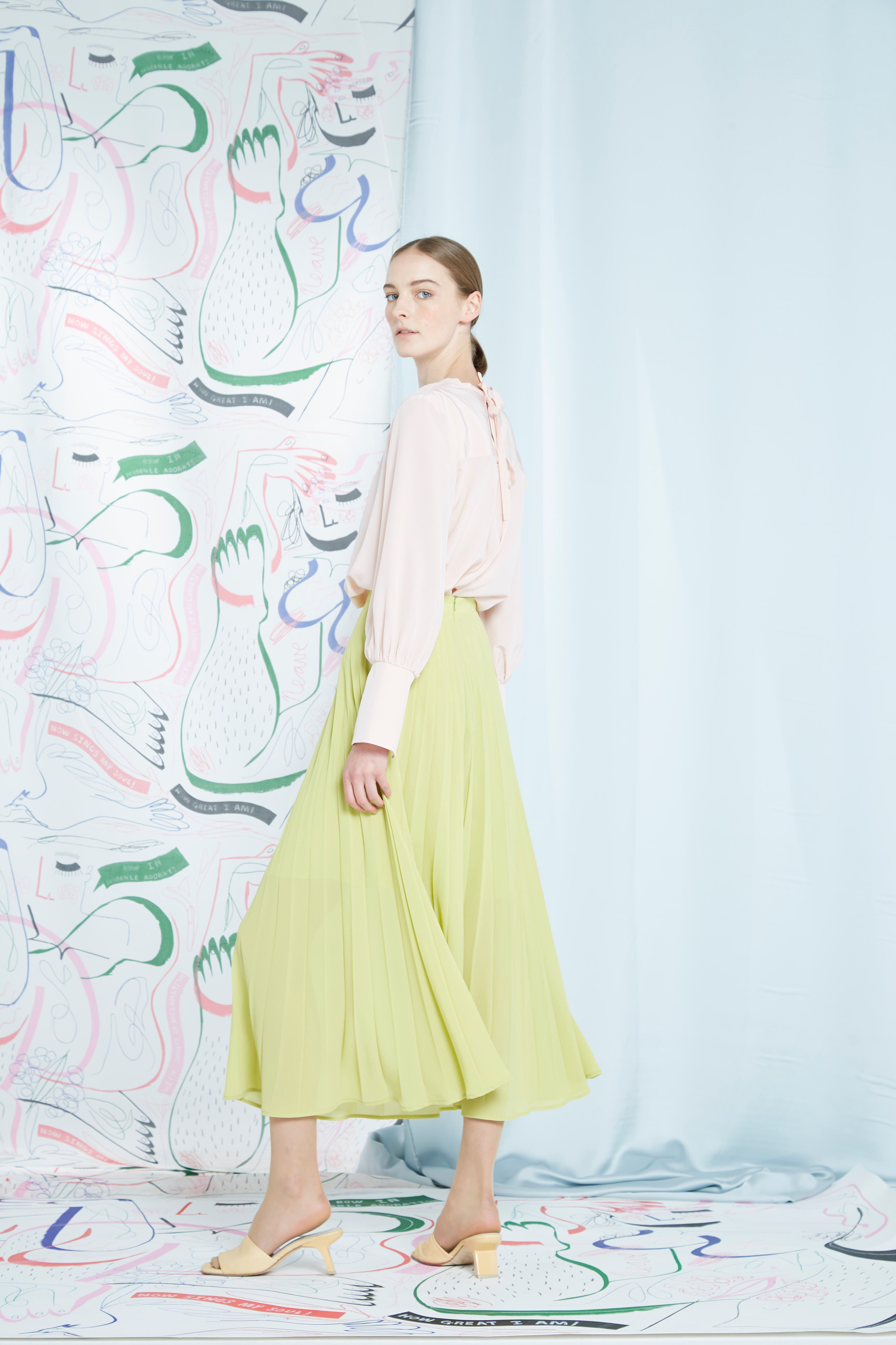 Gathers at upper, mid back. Back of neck closure with tie creates keyhole detail.