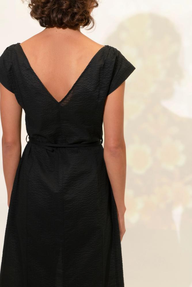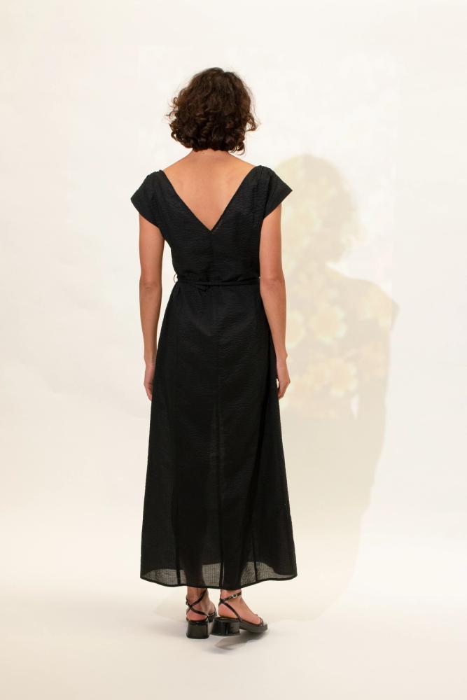 Ankle length Reversible - High neck or V-neck No zip - pulls over head Gathered on shoulder Pockets