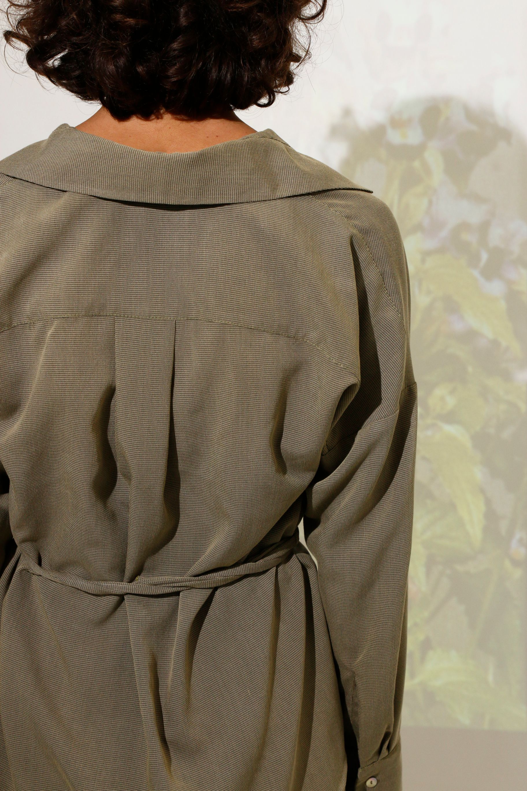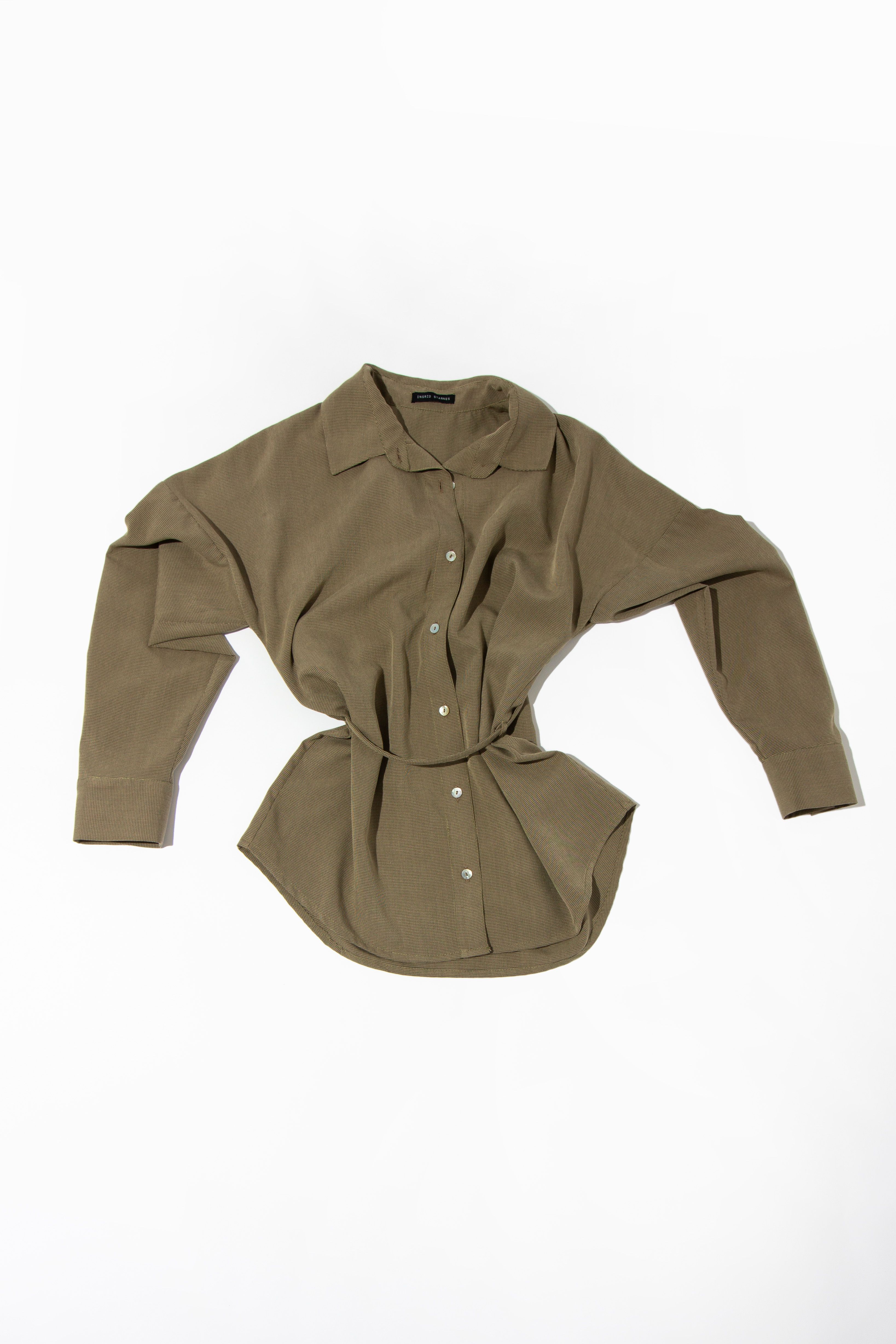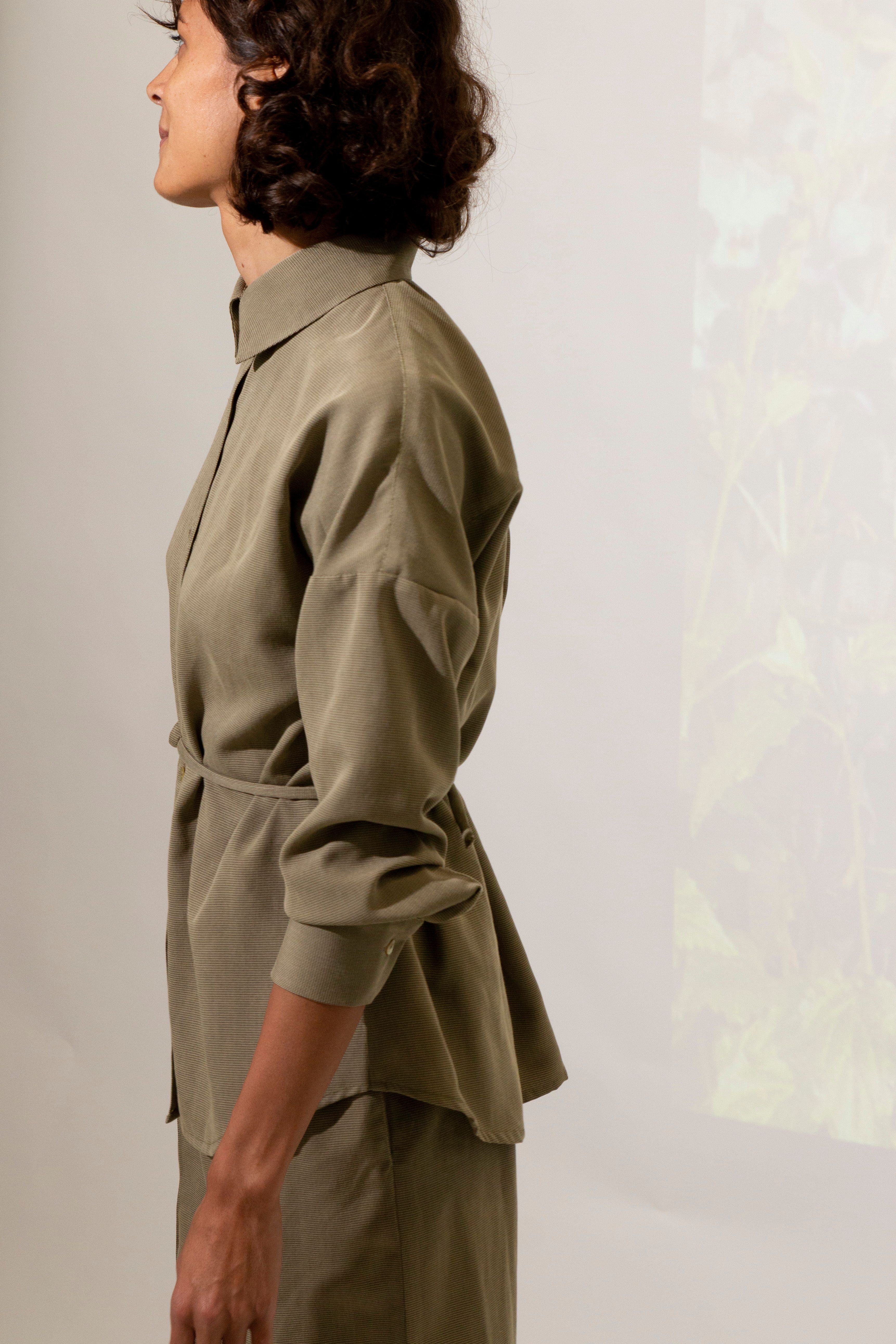 A relaxed fit in the body Full length sleeves and buttoned cuff Sharp collar Soft boning belt - we recommend twisting and tucking the belt around your waist