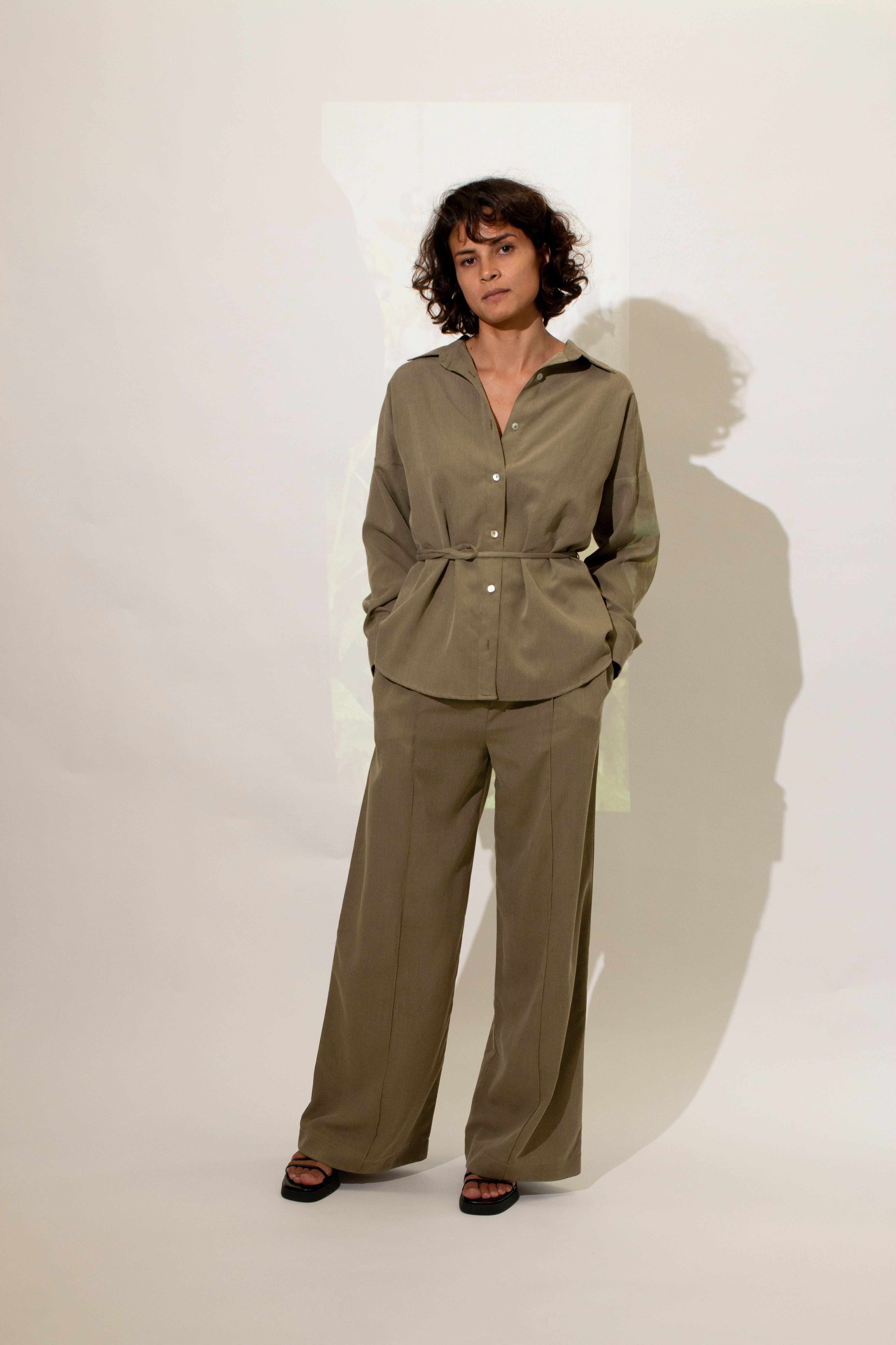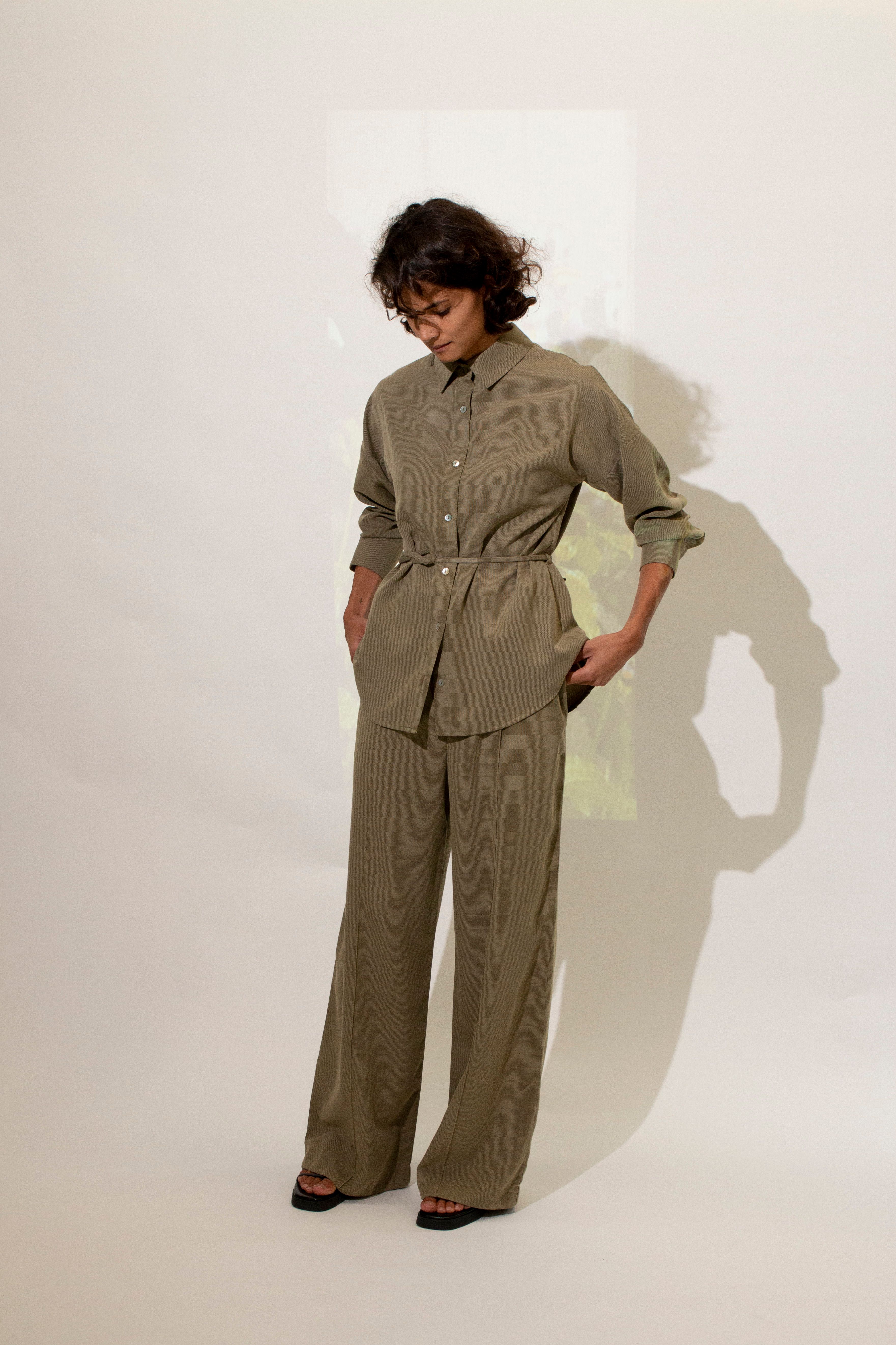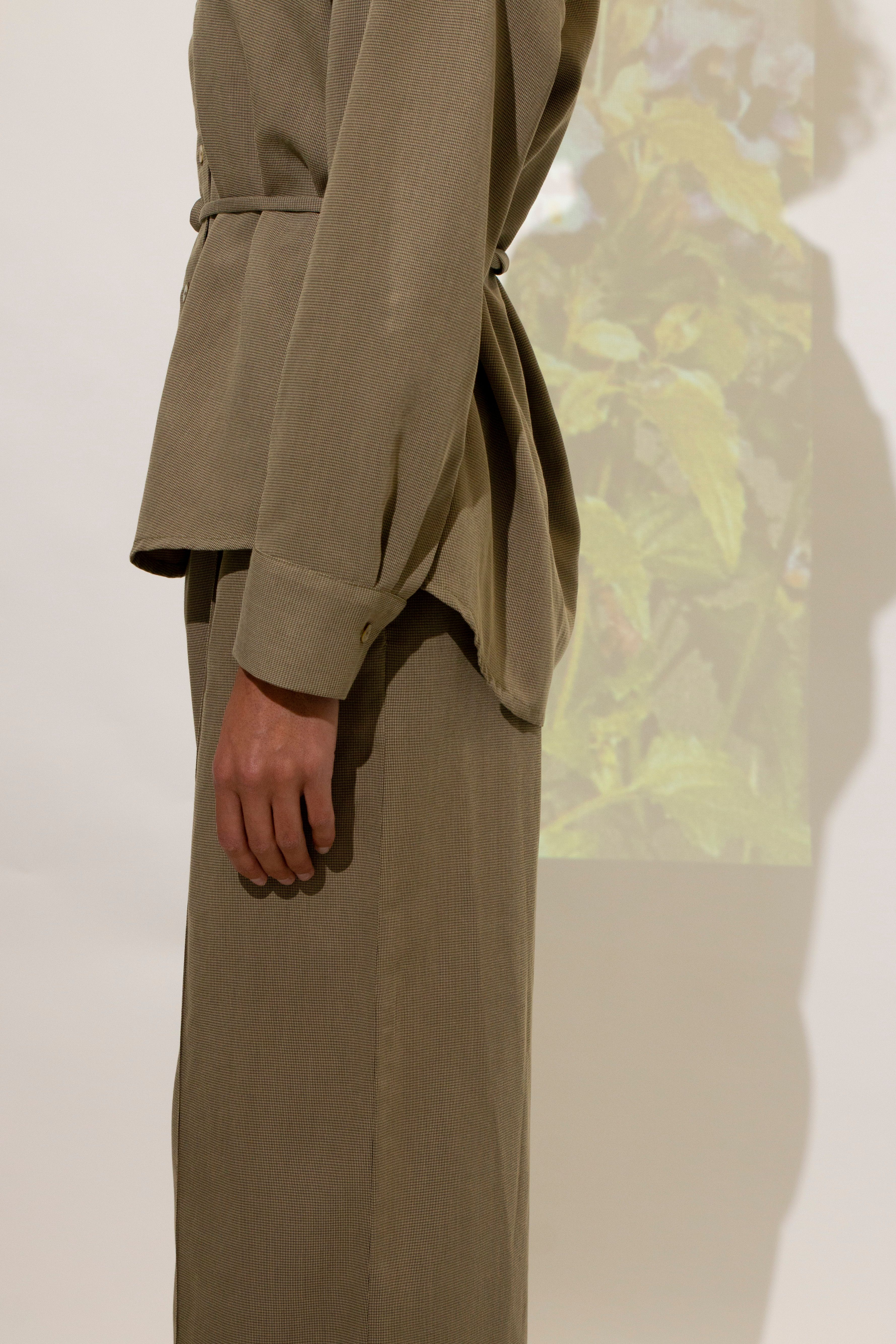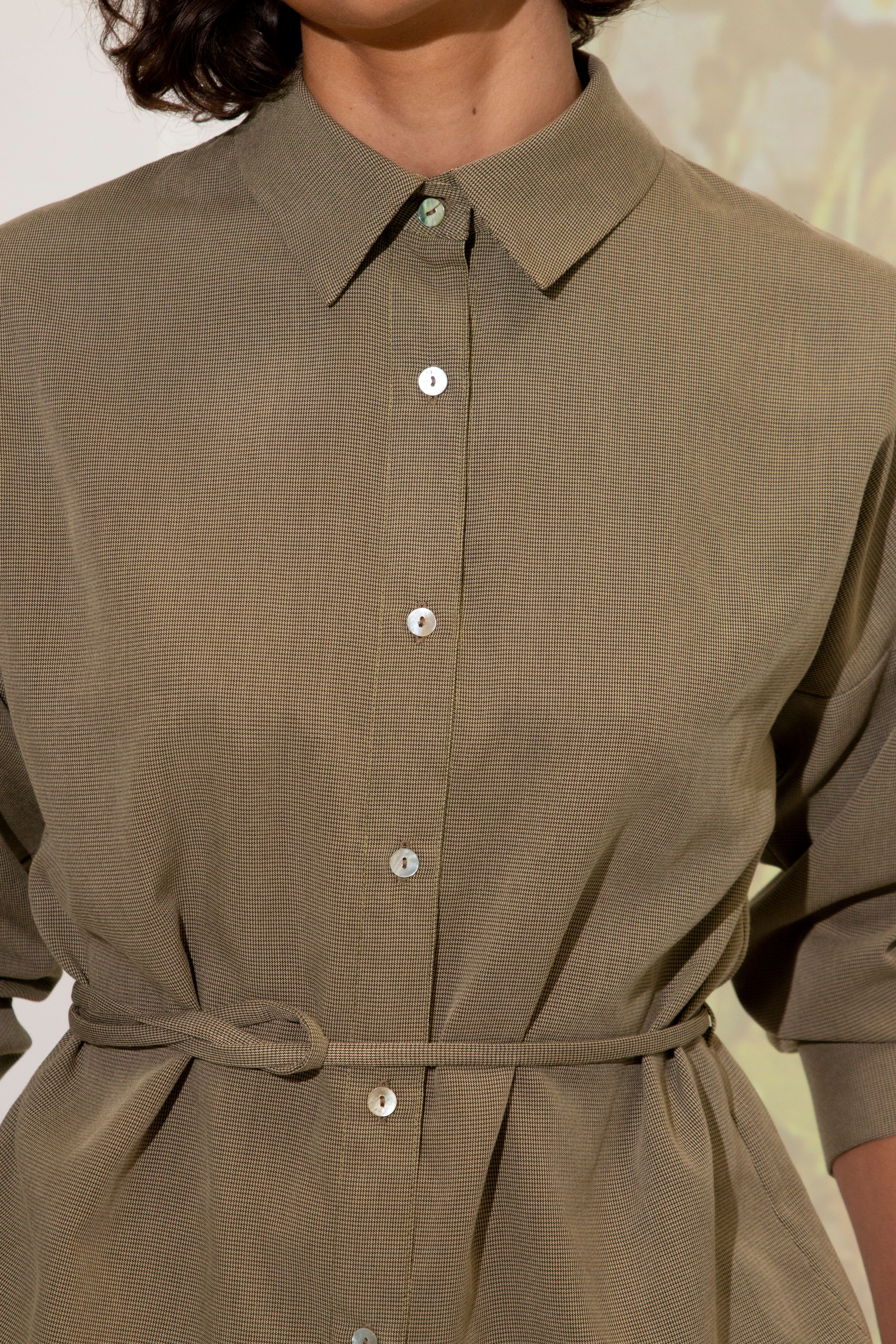 A relaxed fit in the body Full length sleeves and buttoned cuff Sharp collar Soft boning belt - we recommend twisting and tucking the belt around your waist