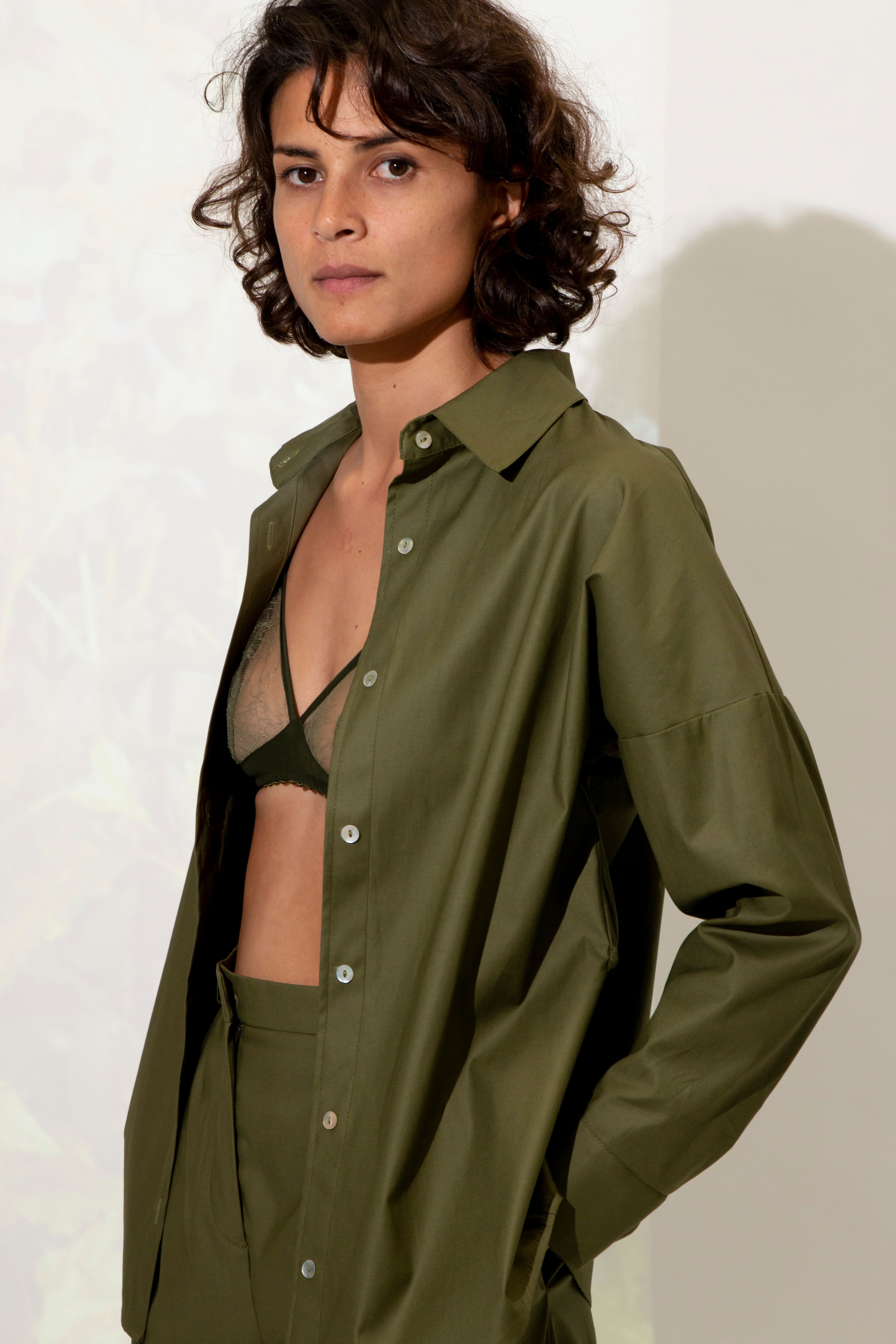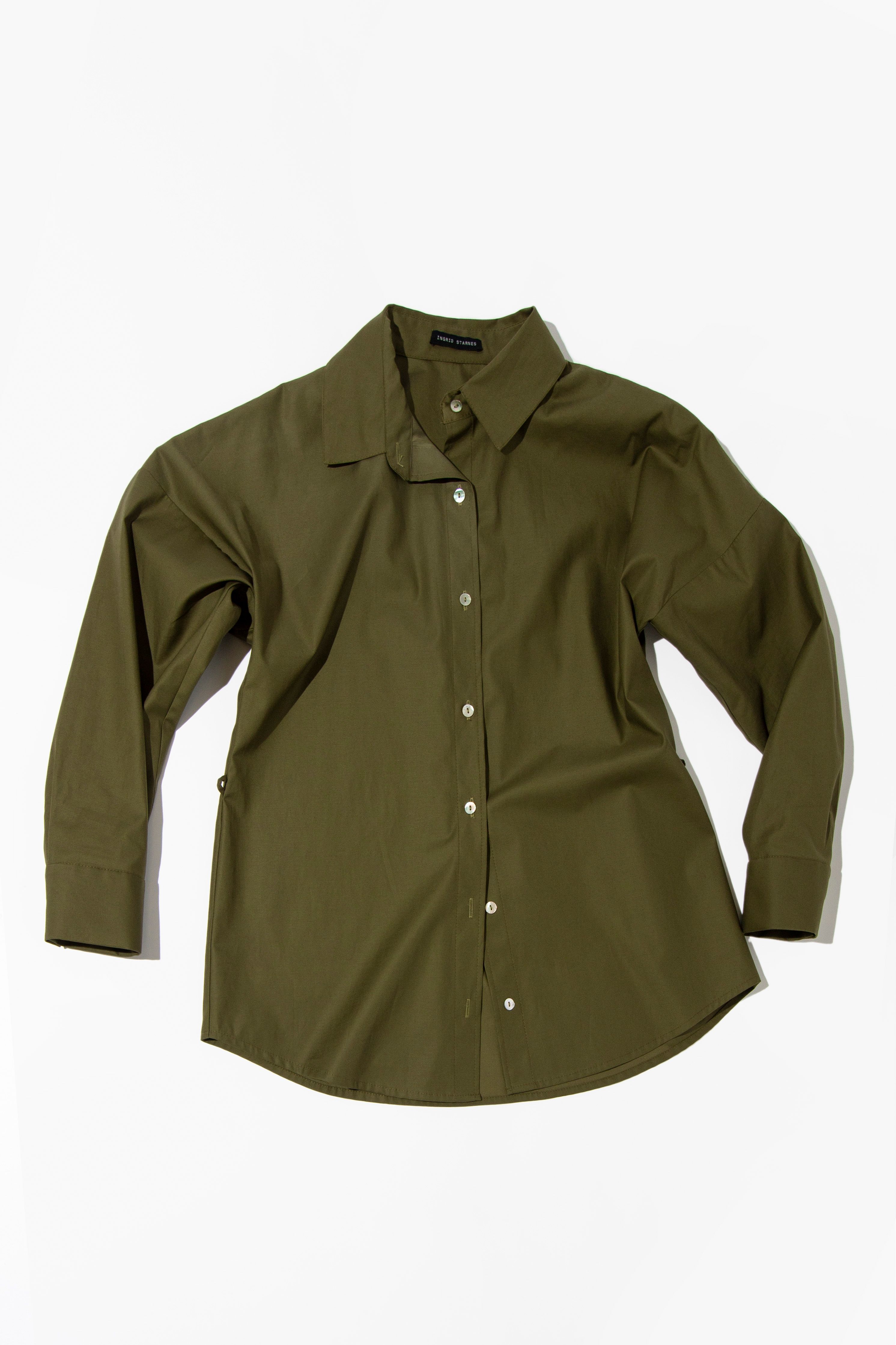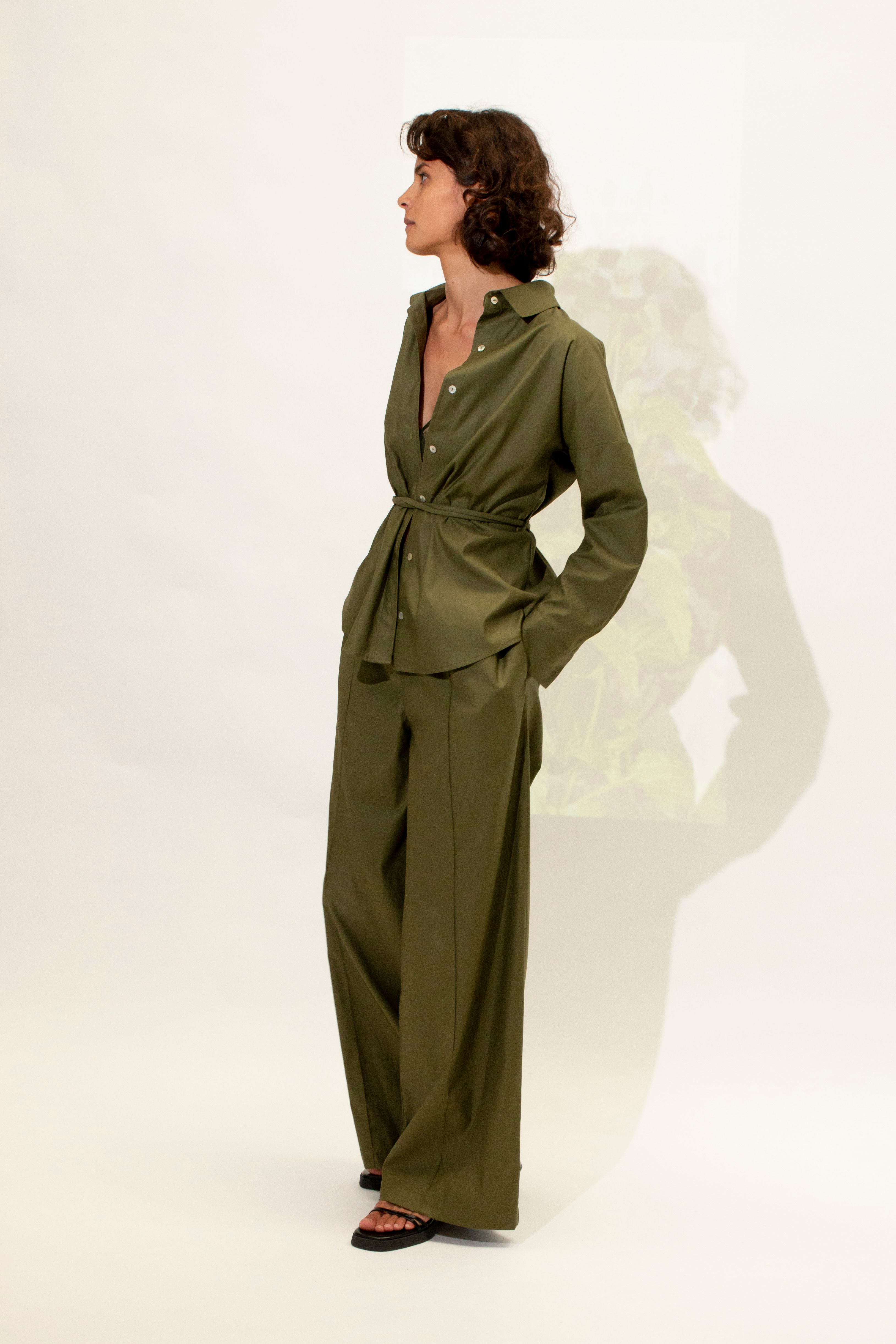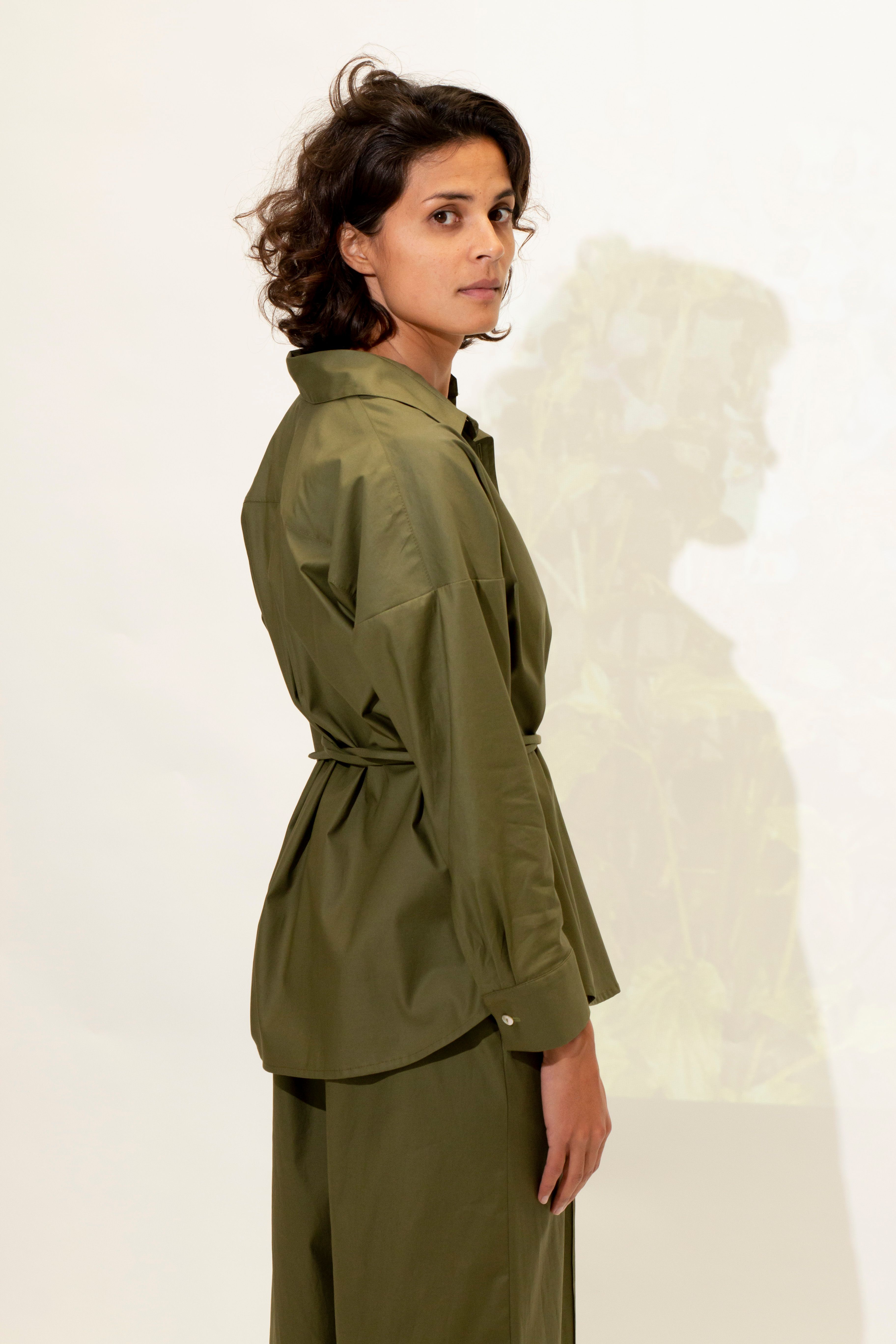 A relaxed fit in the body Full length sleeves and buttoned cuff Sharp collar Soft boning belt - we recommend twisting and tucking the belt around your waist