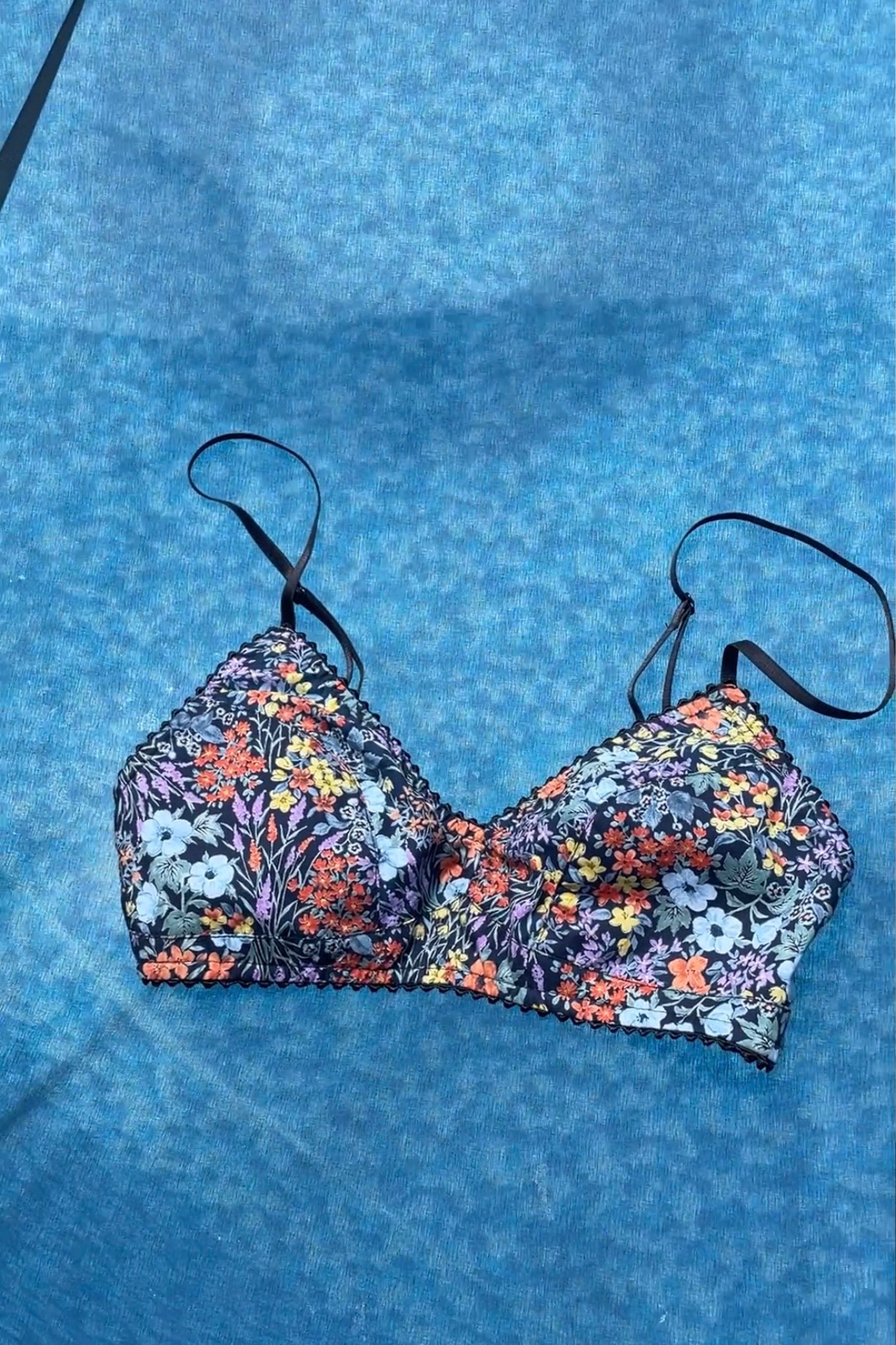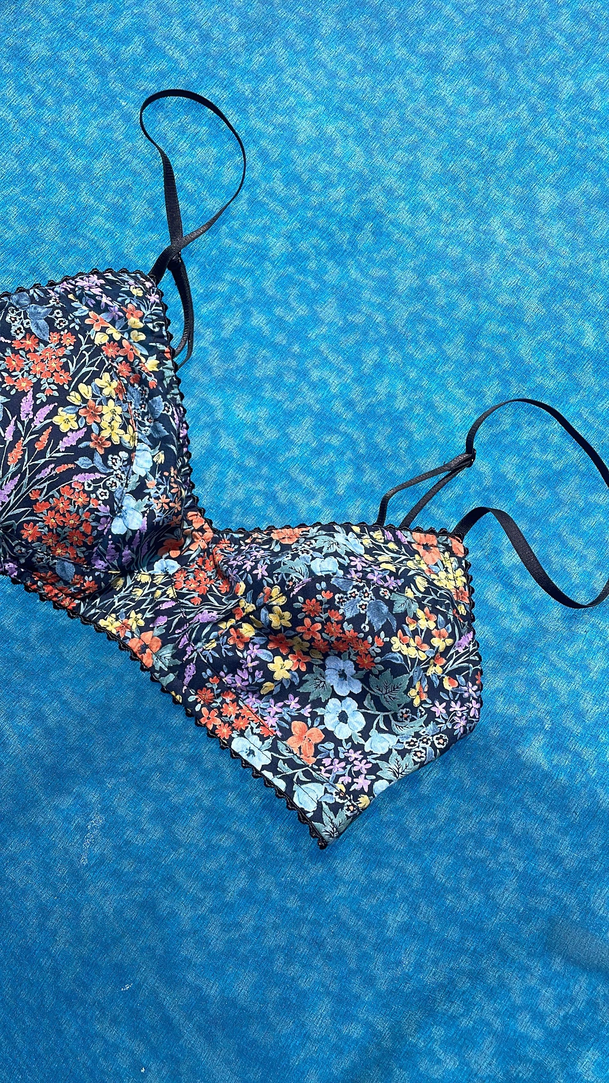 A beautiful soft 100% floral cotton, featuring a double layered bust cup with slim straps and a soft powermesh back.