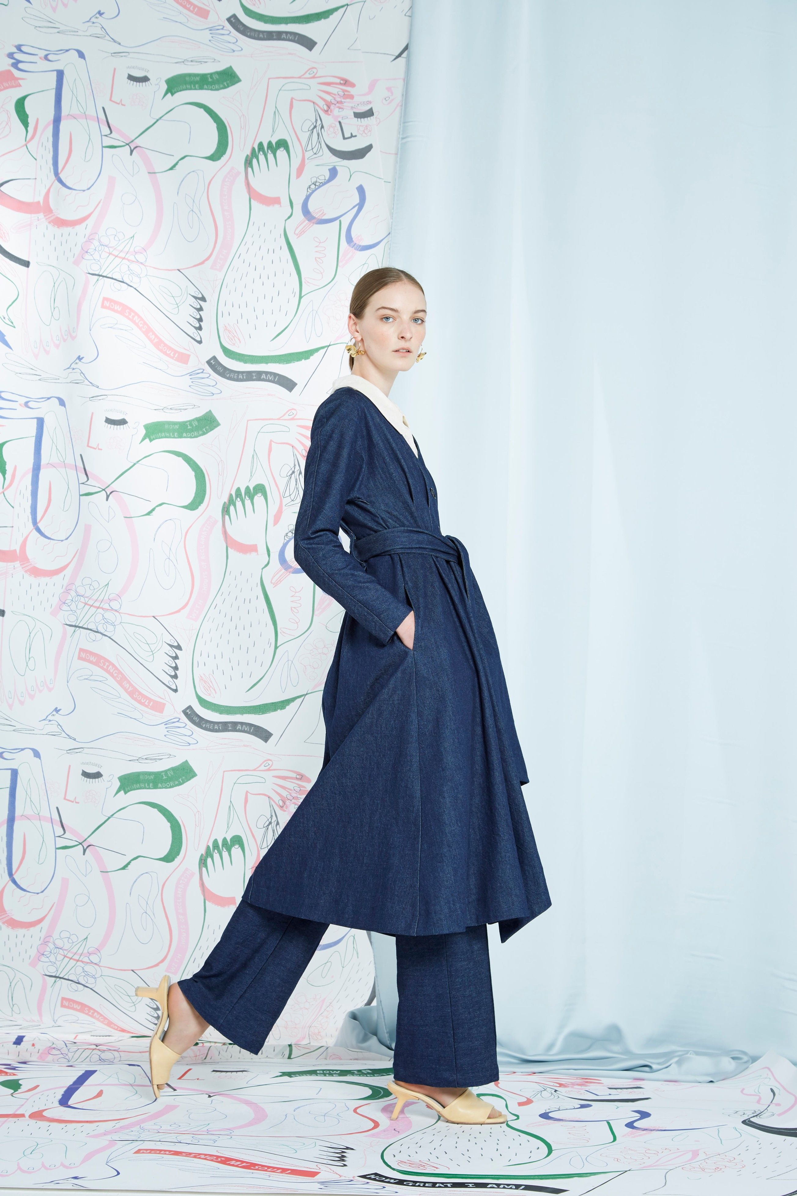 -Pockets, 7 buttons down front, deep tucks at waist, wide waist-tie.