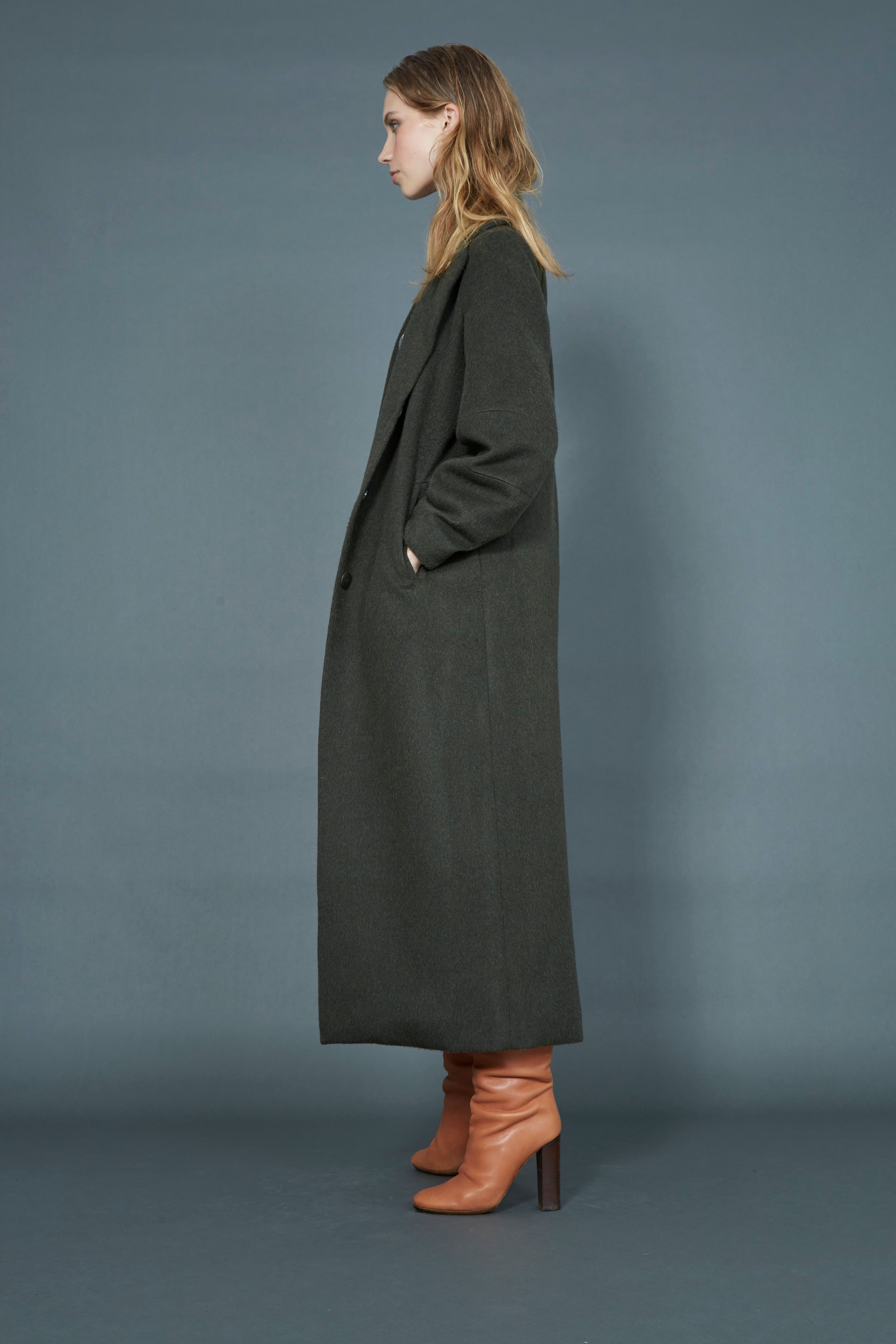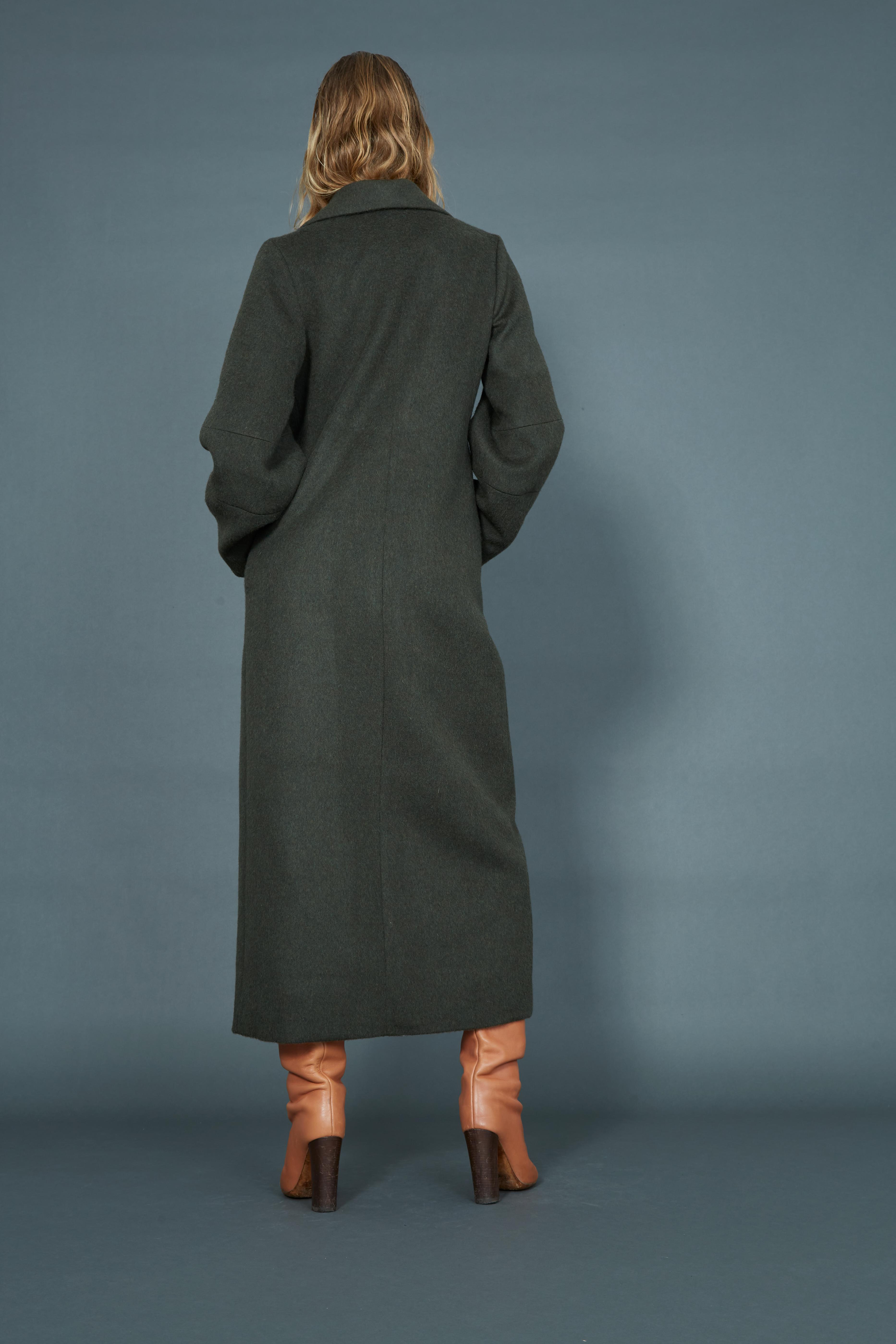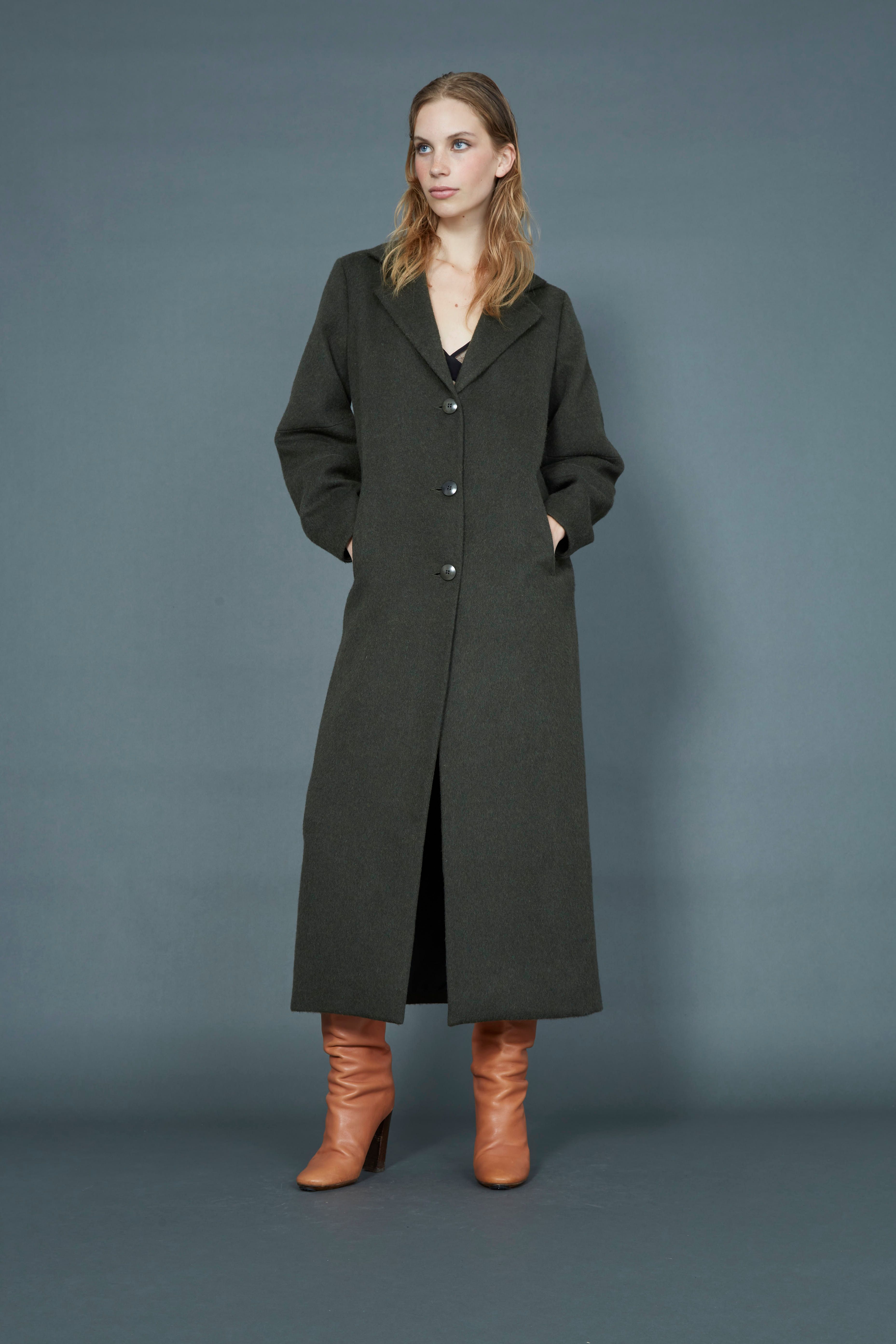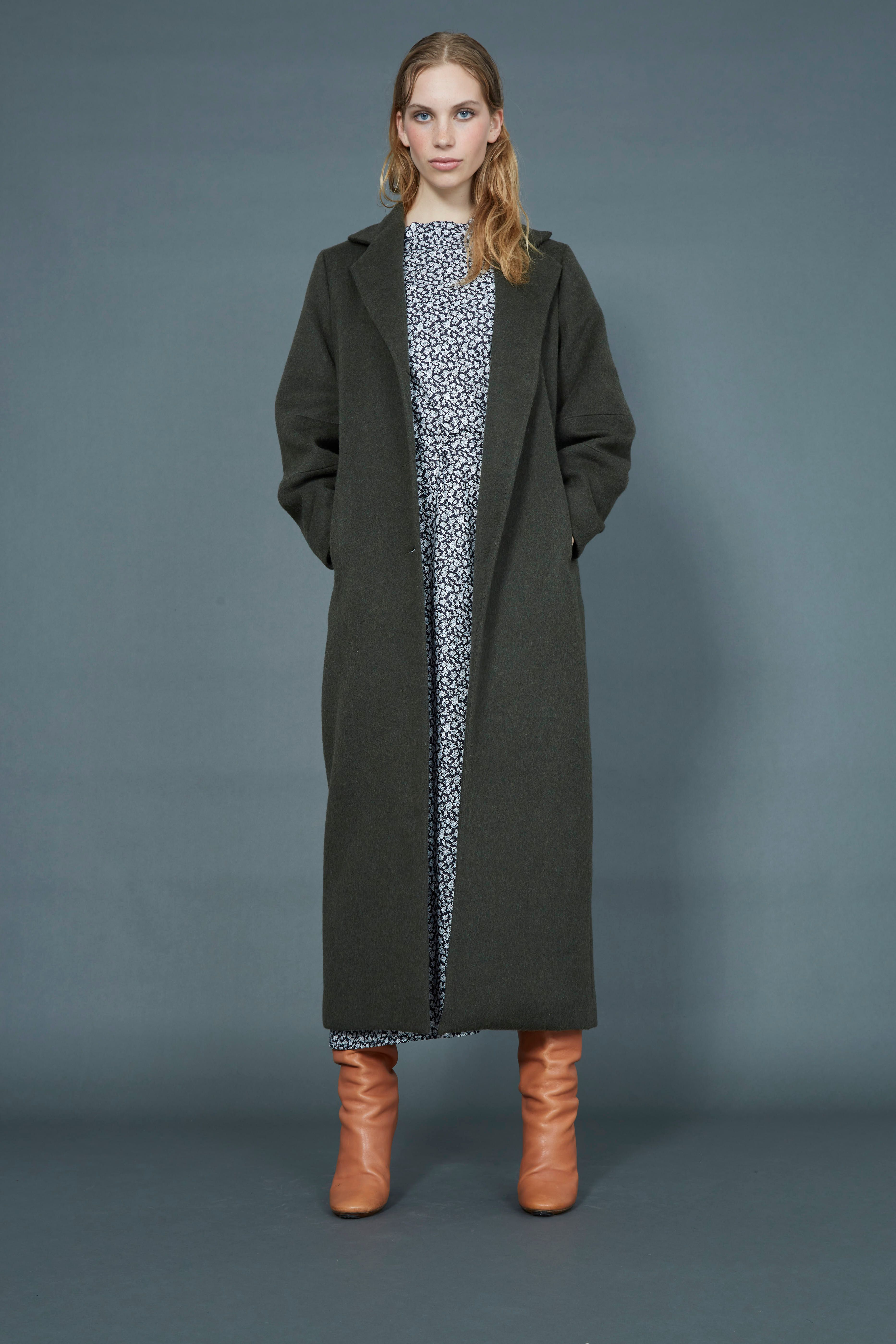 Finishes above the ankle Straight cut Side pockets Fully lined Tulip sleeve Button-down