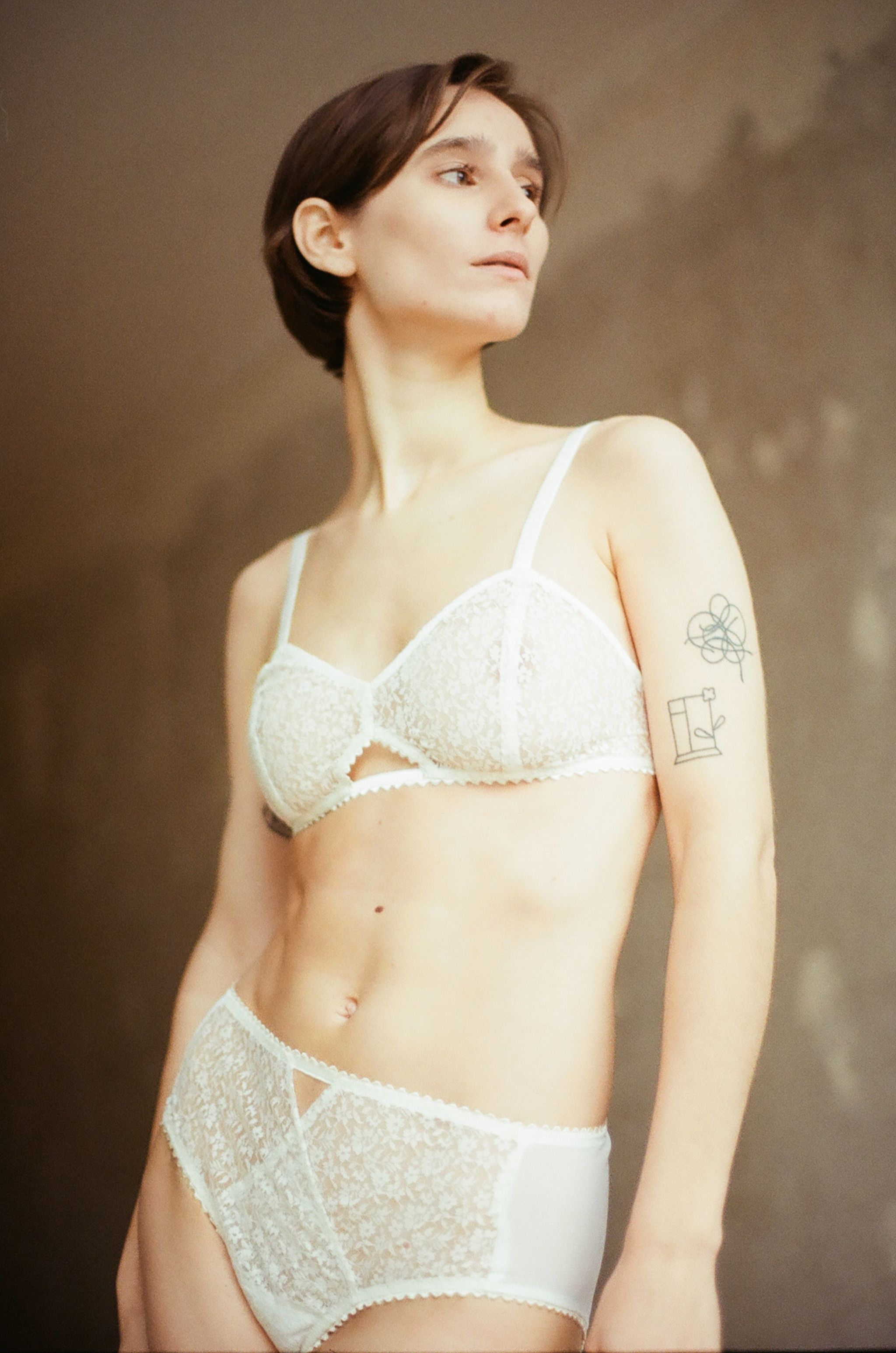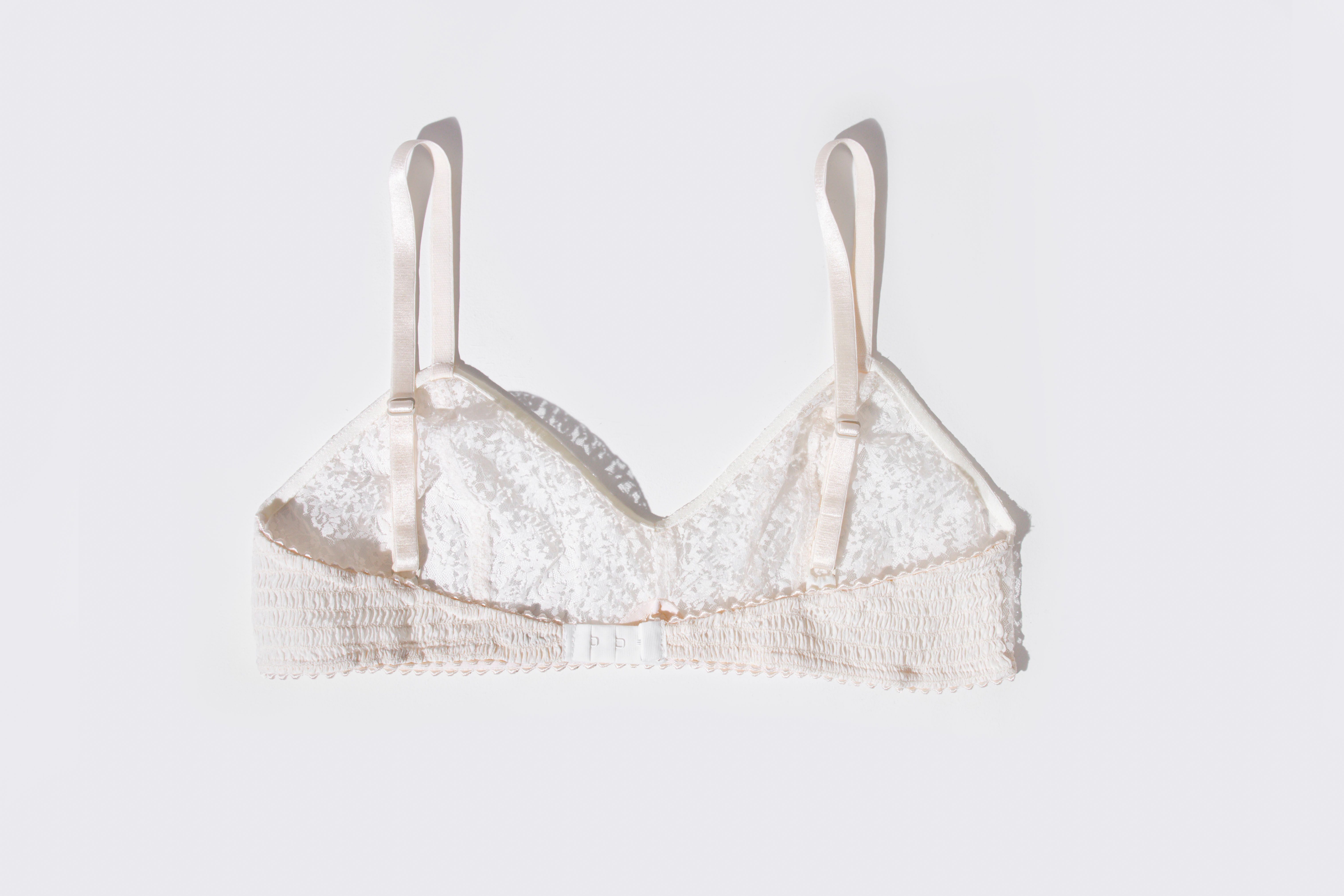 Soft shirring across the back with supportive adjustable straps and a single hook and eye closure