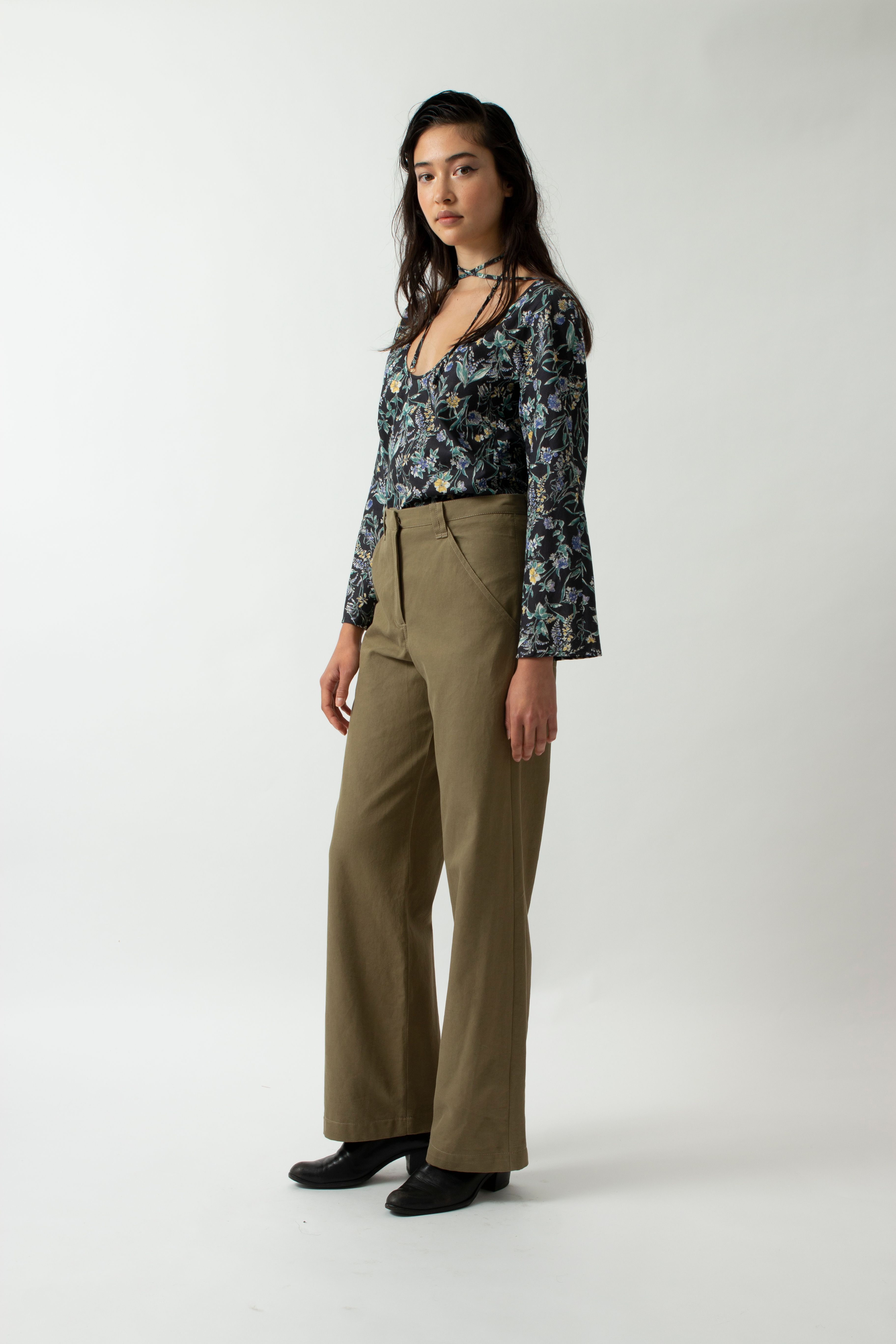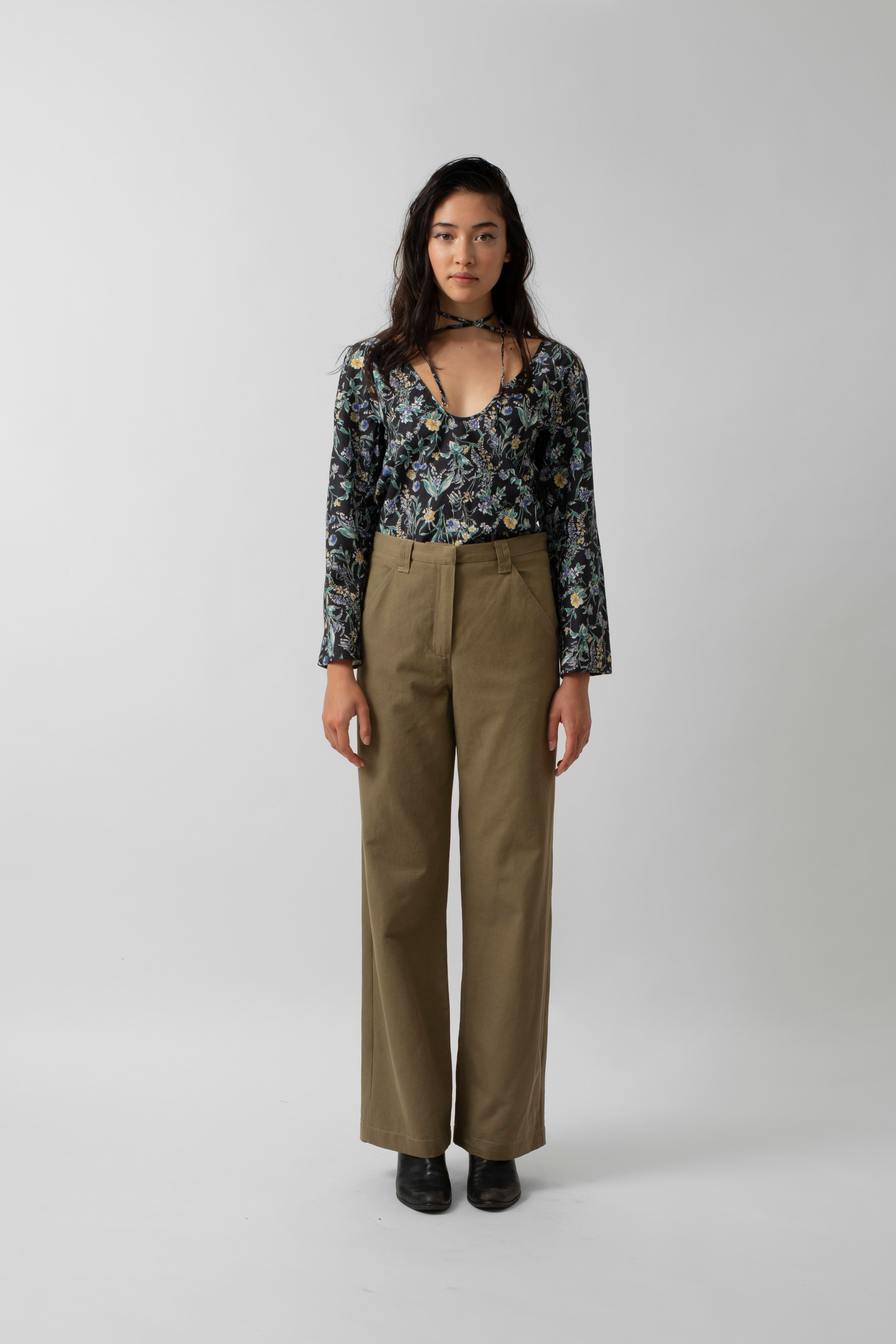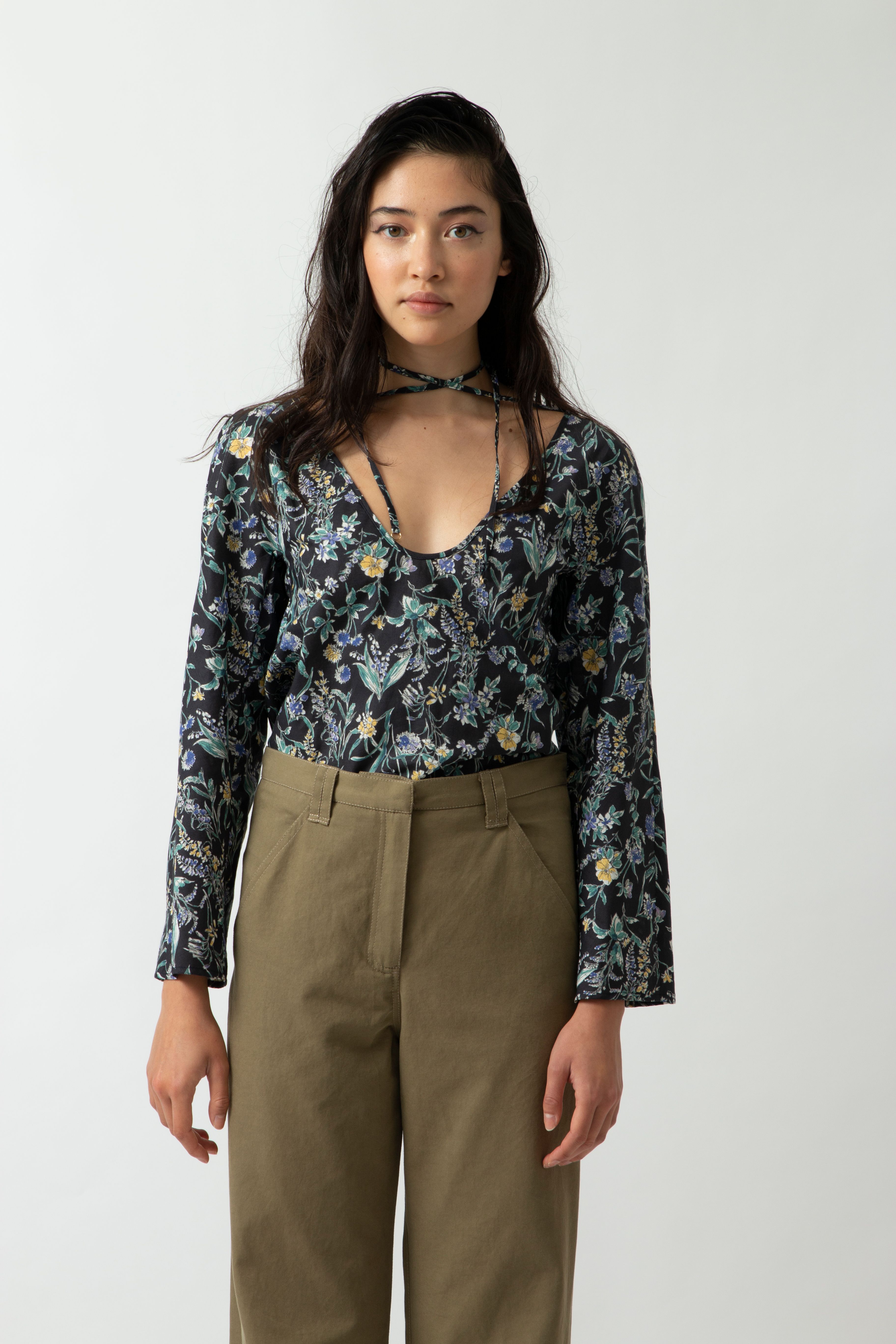 The Laurelle top in our 100% cotton Florida print. Also avaliable in our custom dyed Tobacco hammered silk and waffle cotton white.