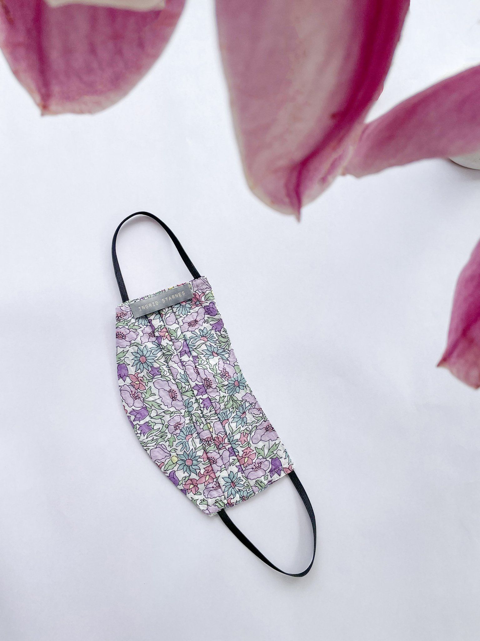 Accordion pin-tucked reusable mask. Has elastic loops for comfort and ease.