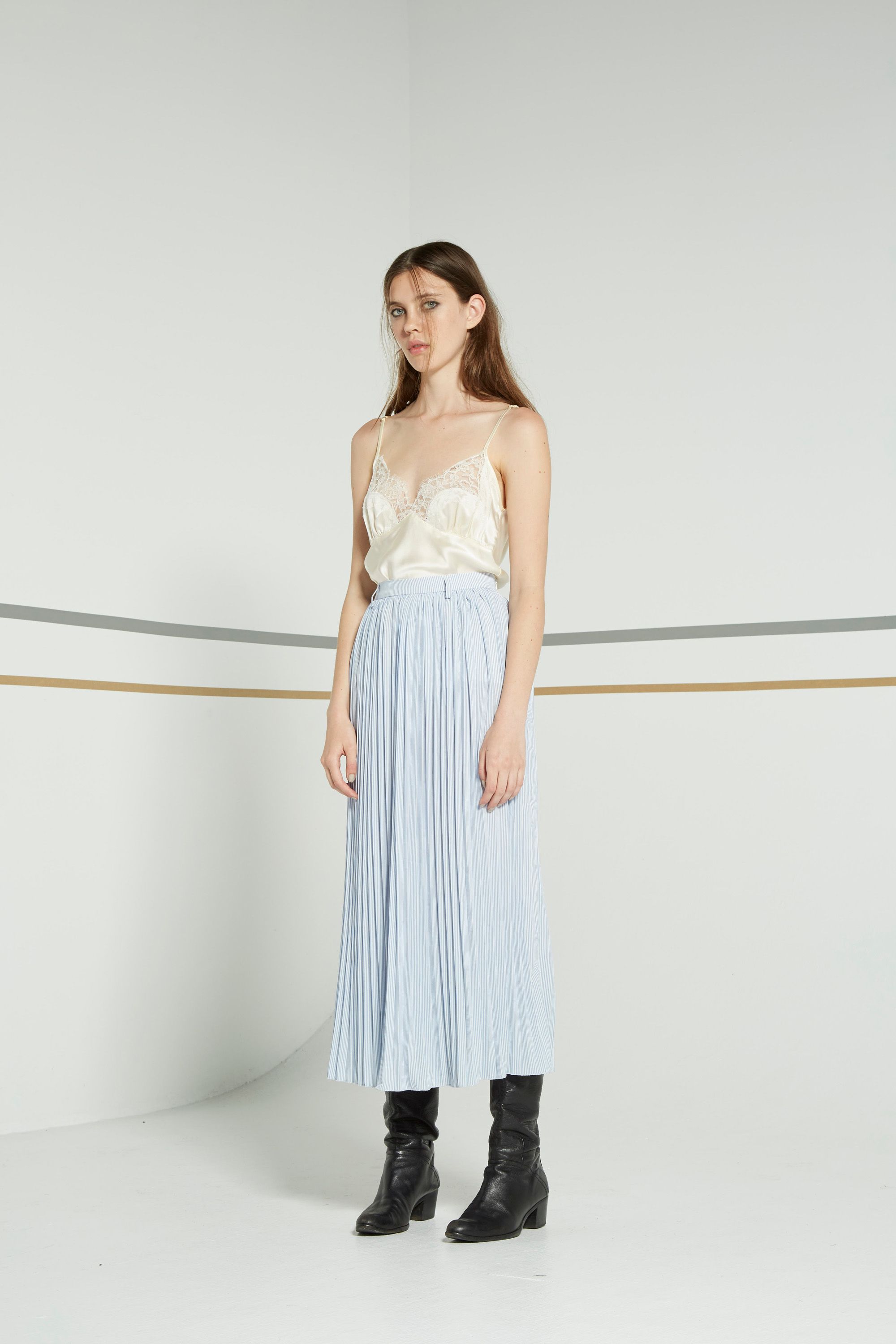Beautifully elegant, the Opal cami is a wardrobe staple to be worn on its own or layering under sheer garments. Satin silk body trimmed with lace detailing neck line, and delicate tucks at bust. Fine adjustable straps. Hem finishes at hips.