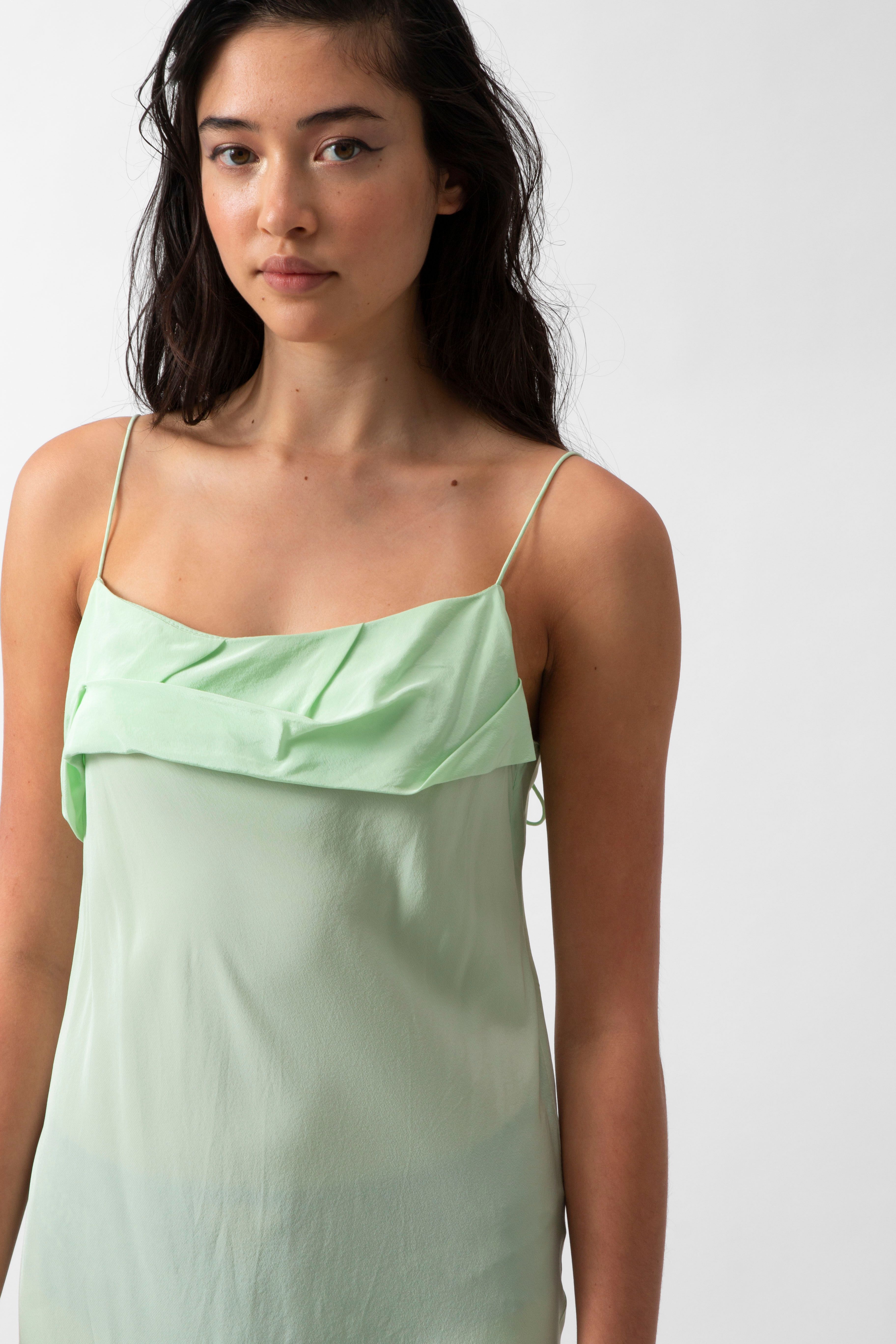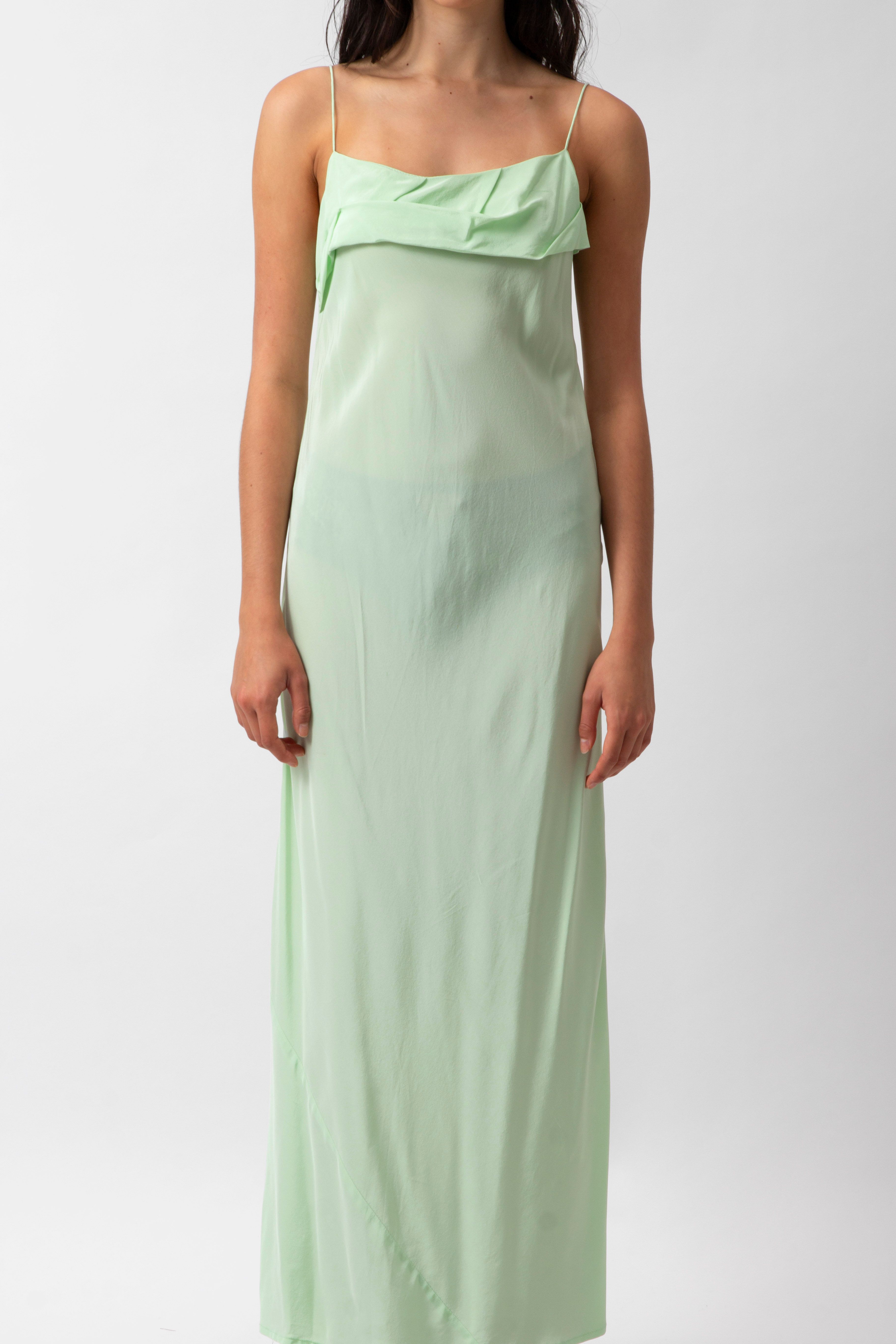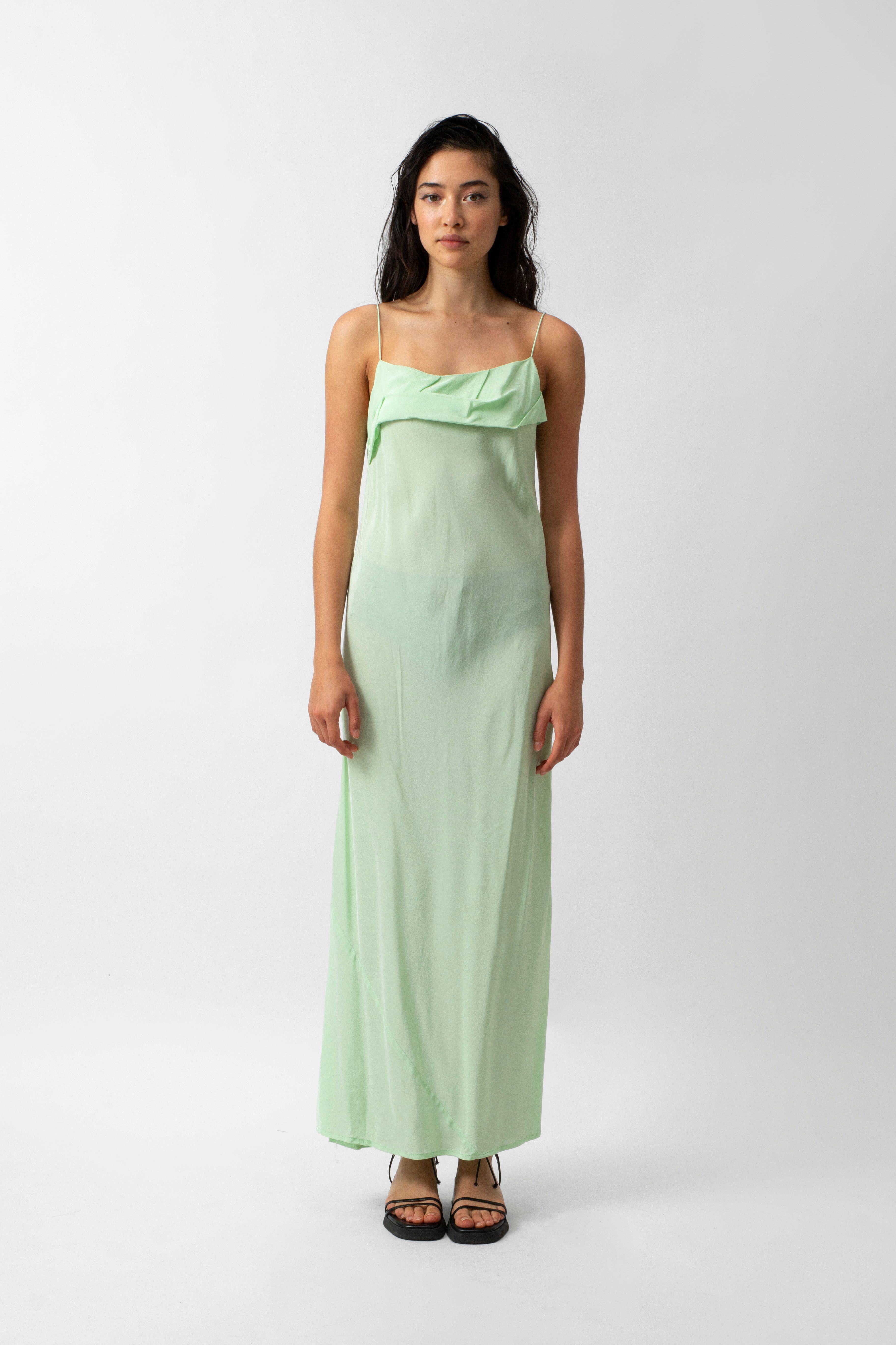 This bias cut dress skims the body gently with the hem falling to the ankle length.