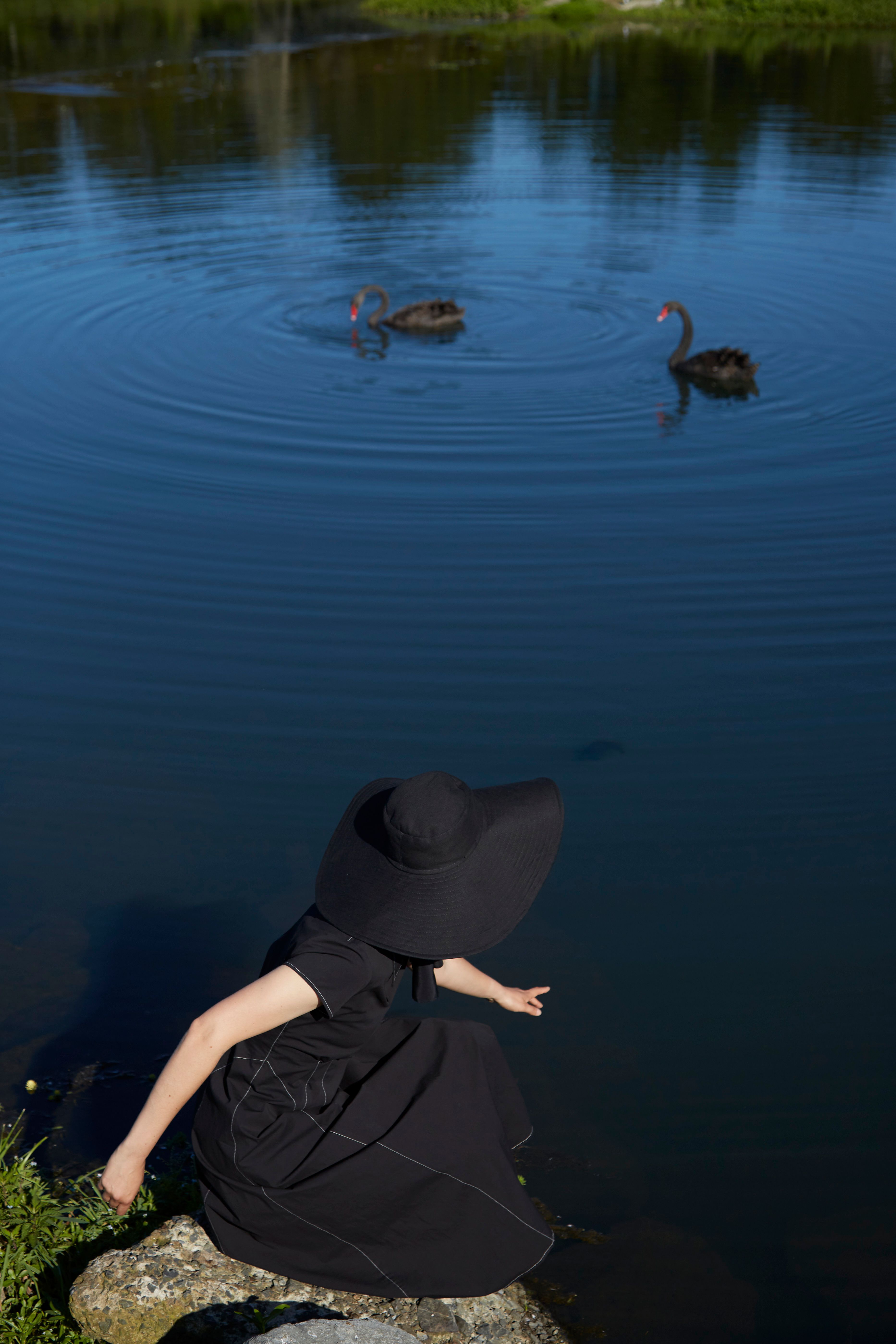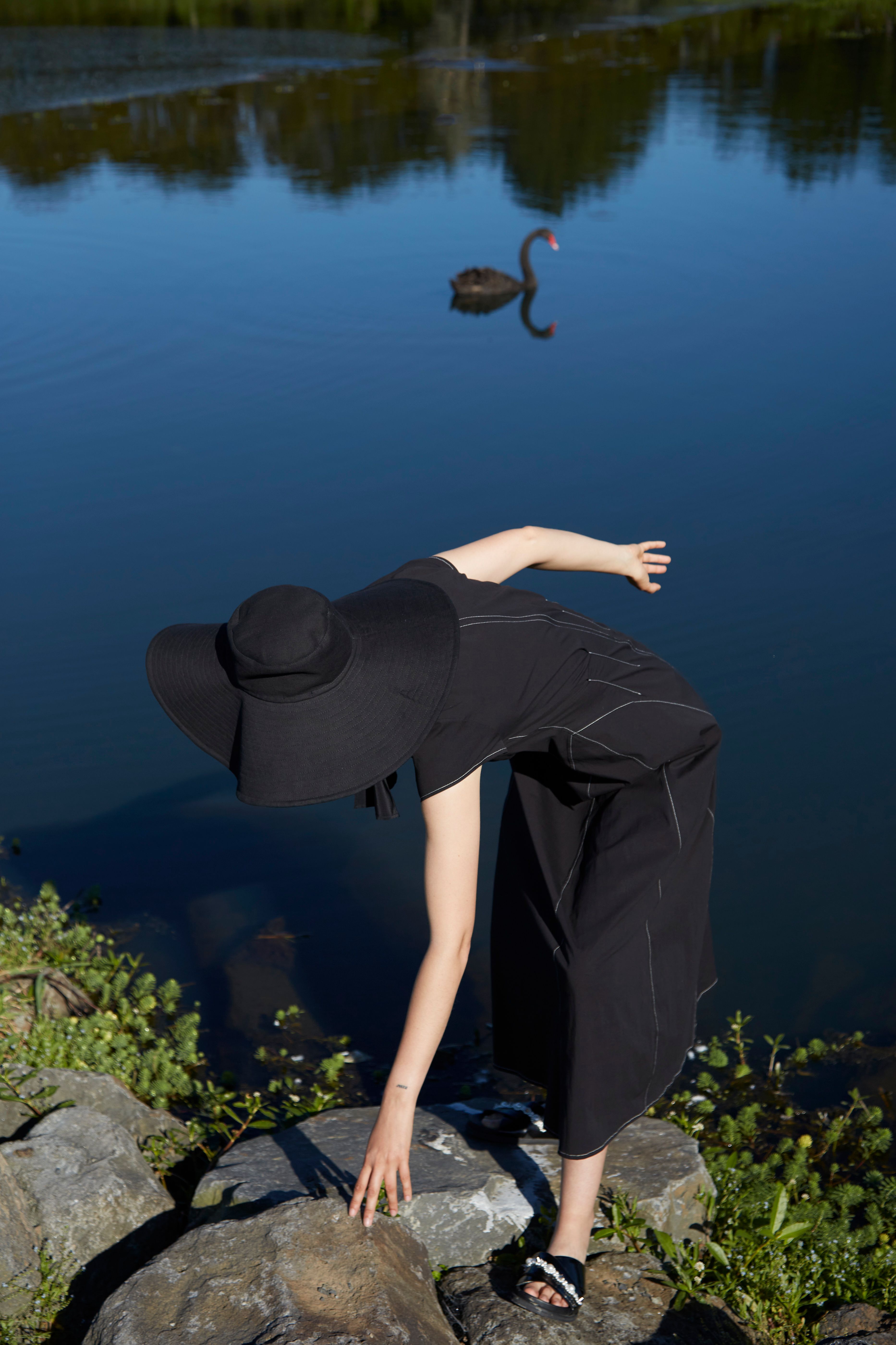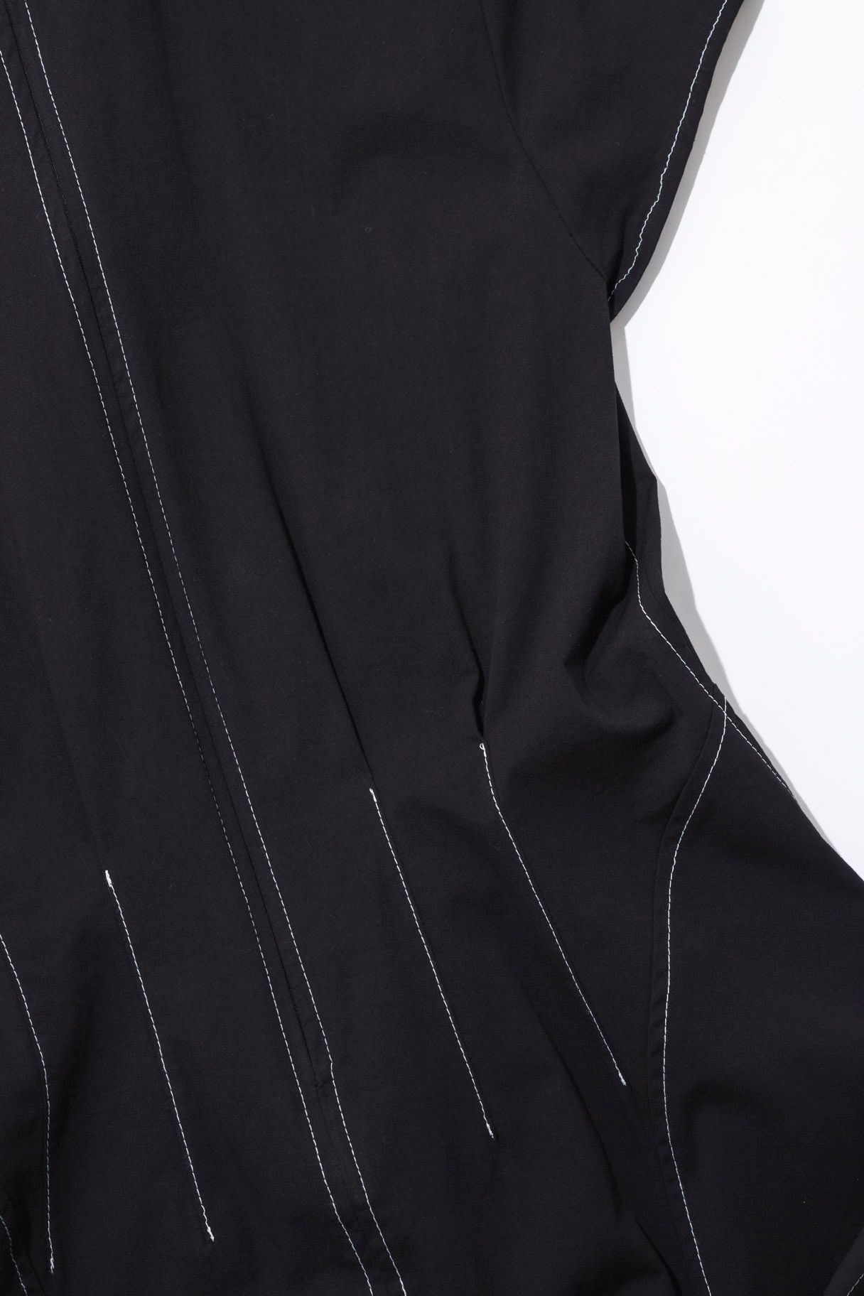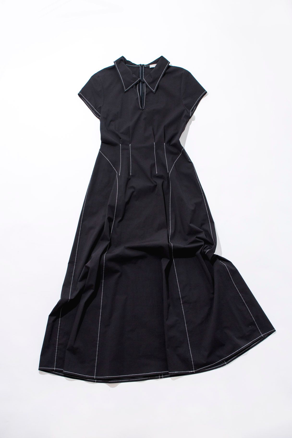 Contrast stitching Keyhole detail with button at top neck Invisible zip up the center back Darts at the waist for shape Cap sleeves Made in Aotearoa