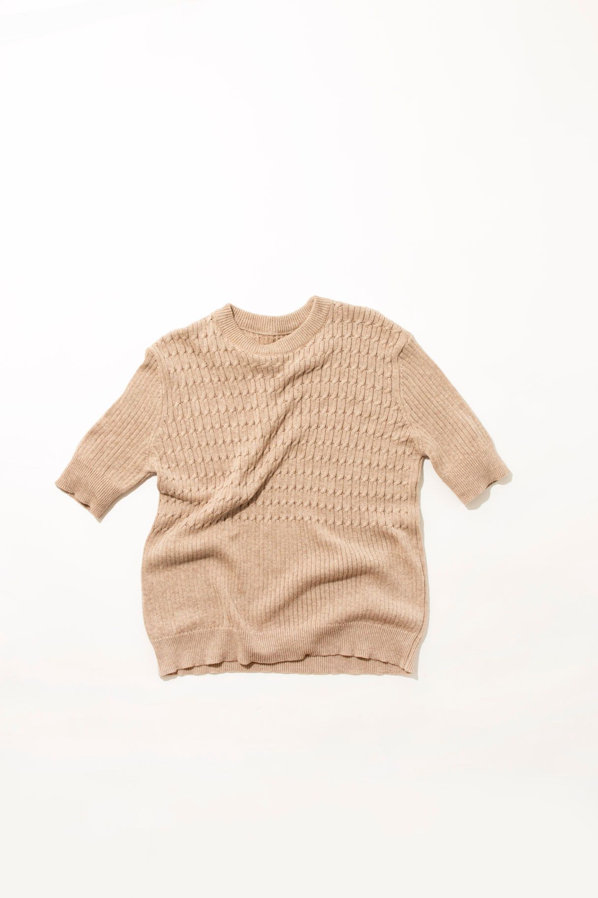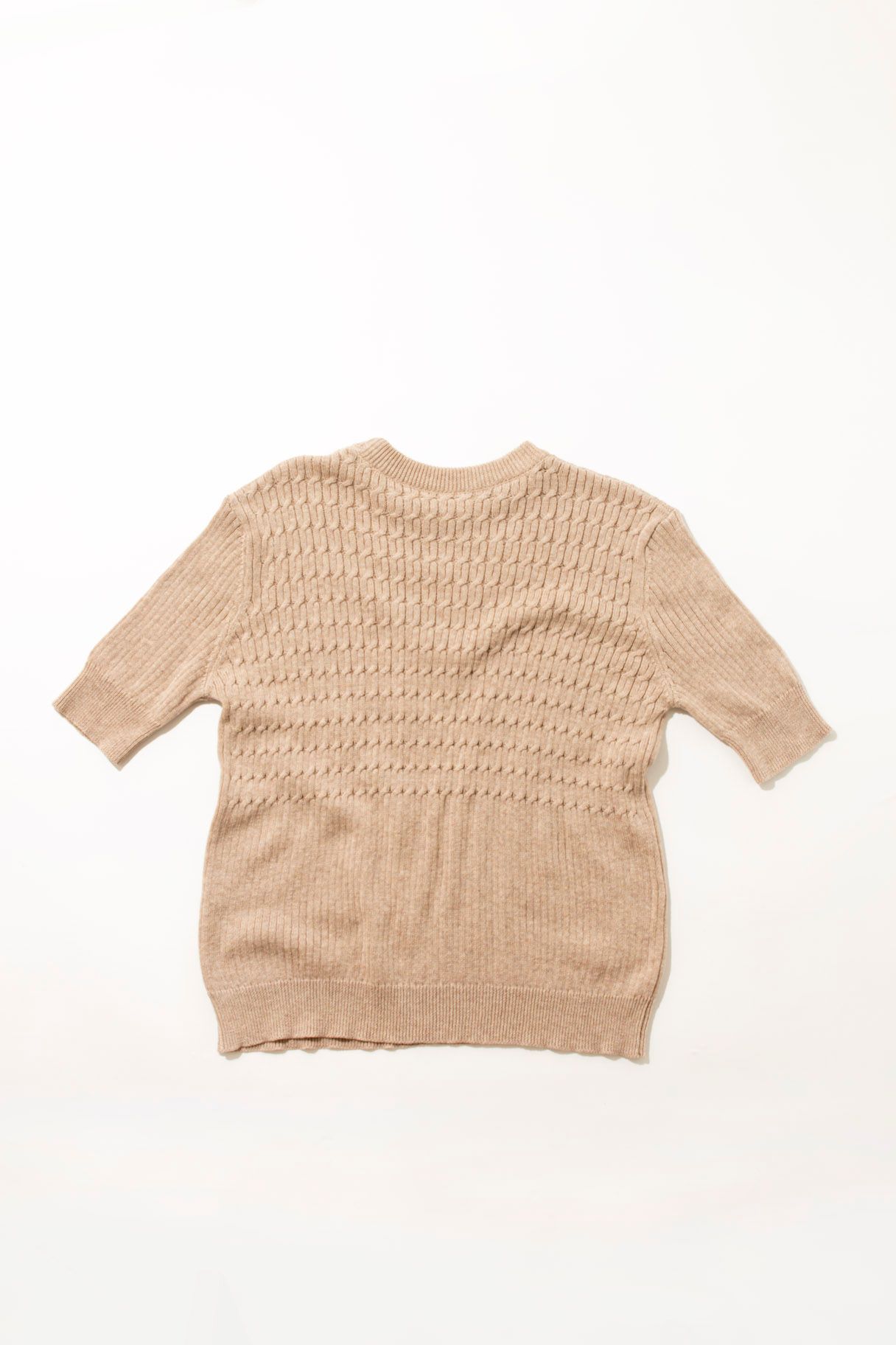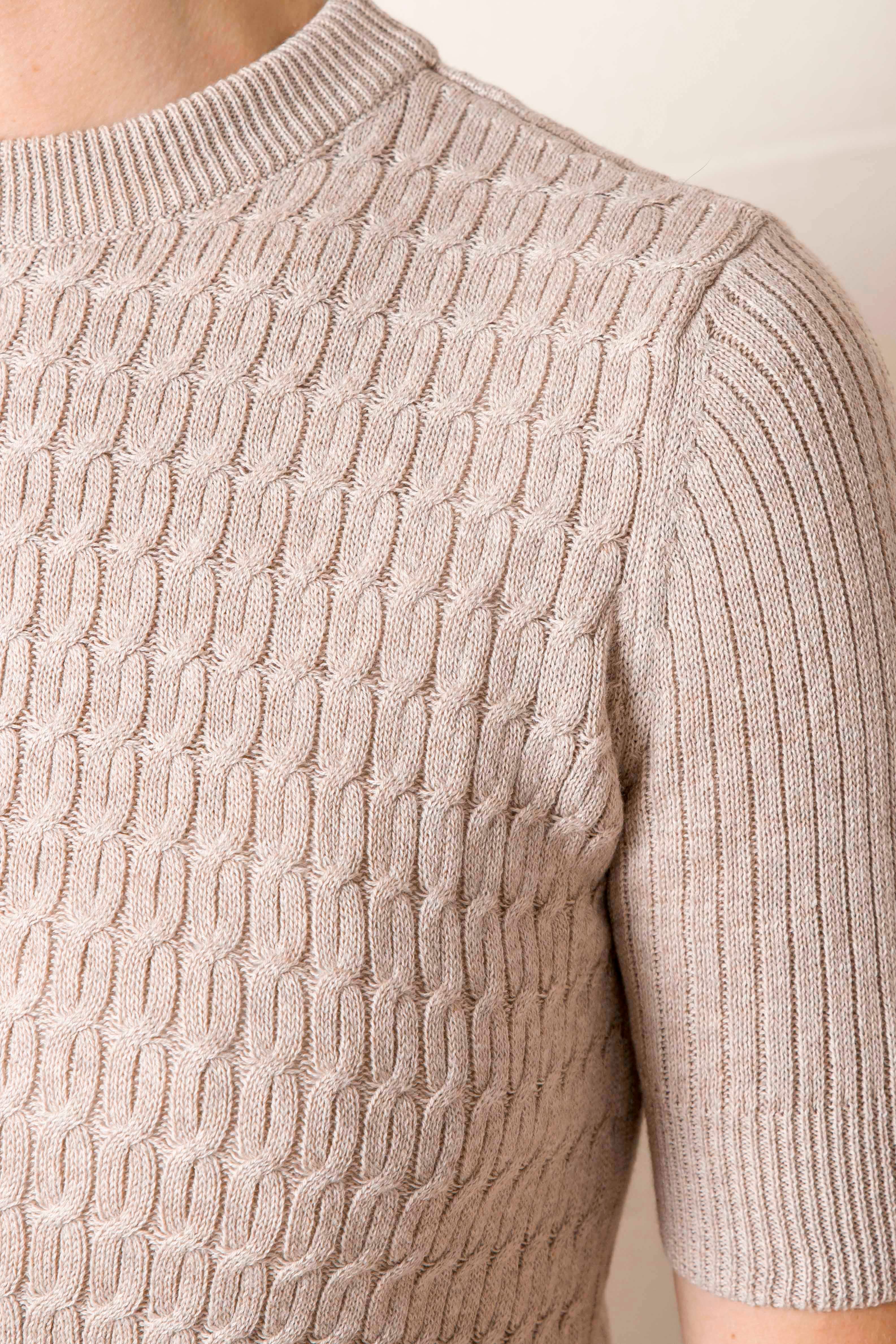 Fine cable knit rib t-shirt Fitted Sleeves finish mid-bicep