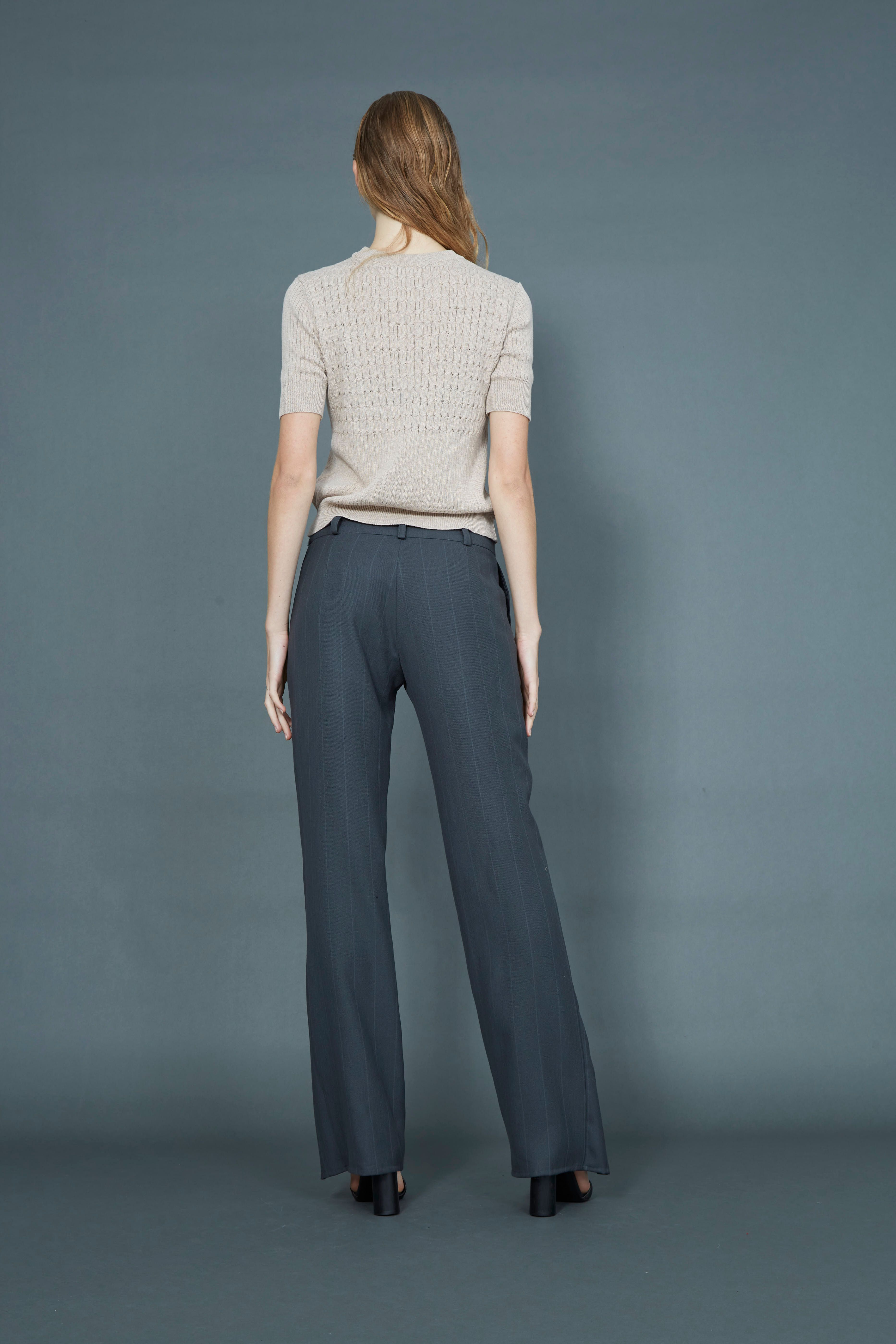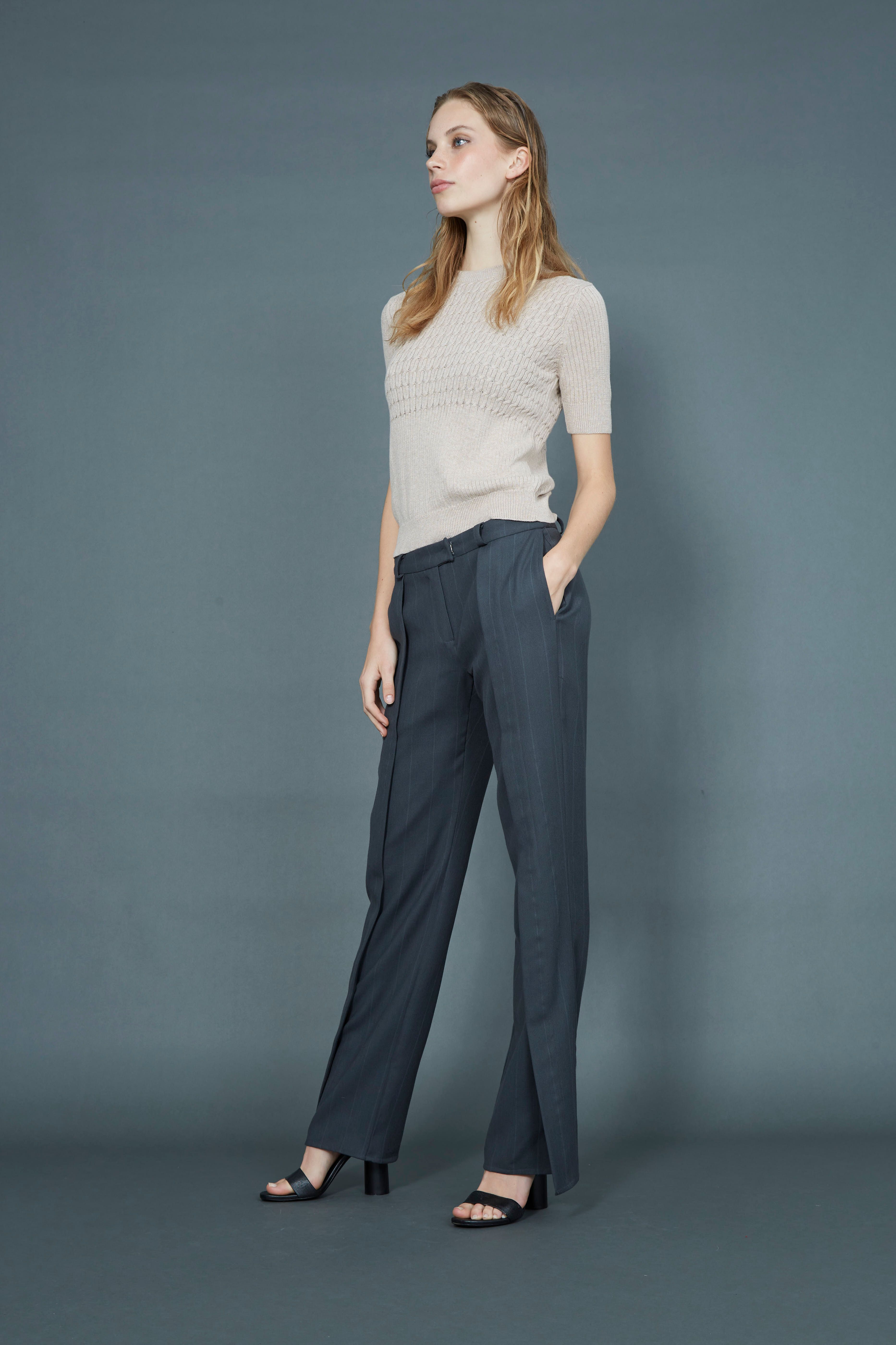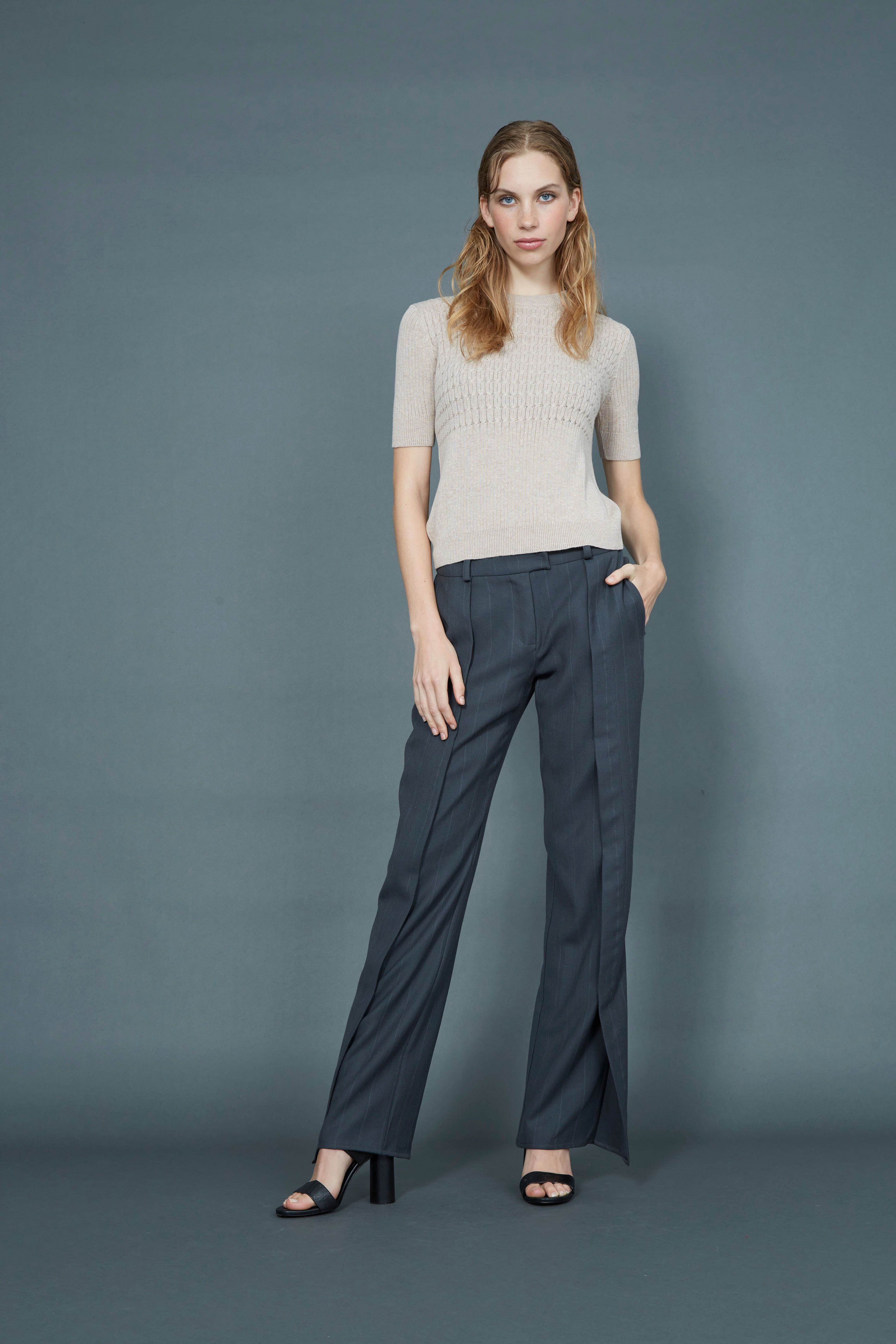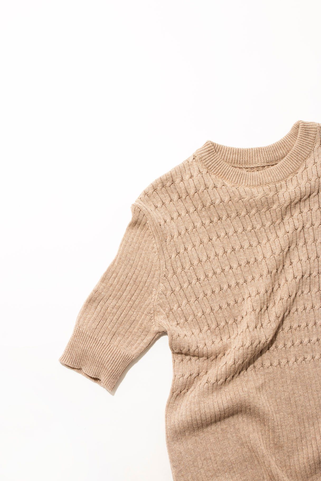 Fine cable knit rib t-shirt Fitted Sleeves finish mid-bicep