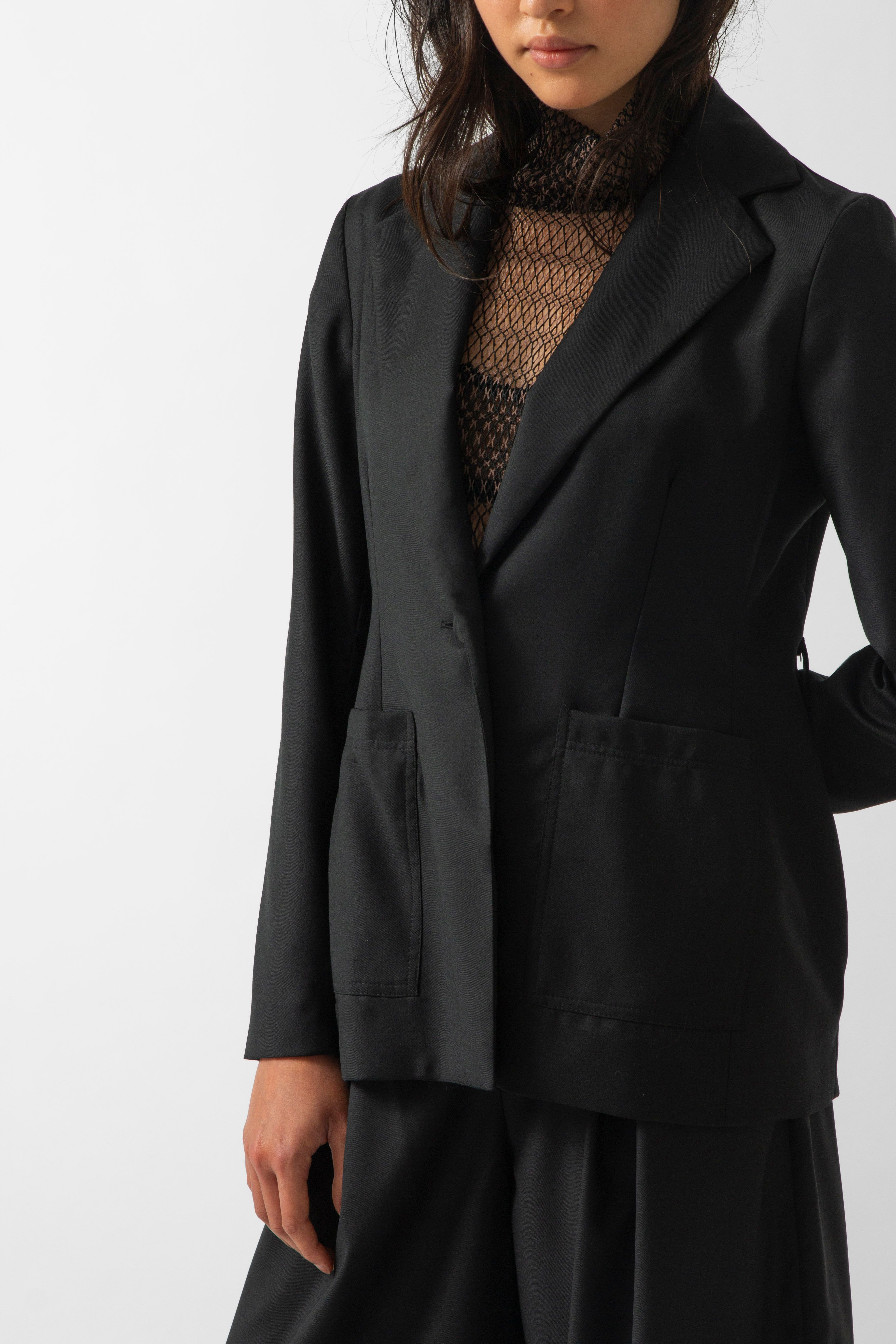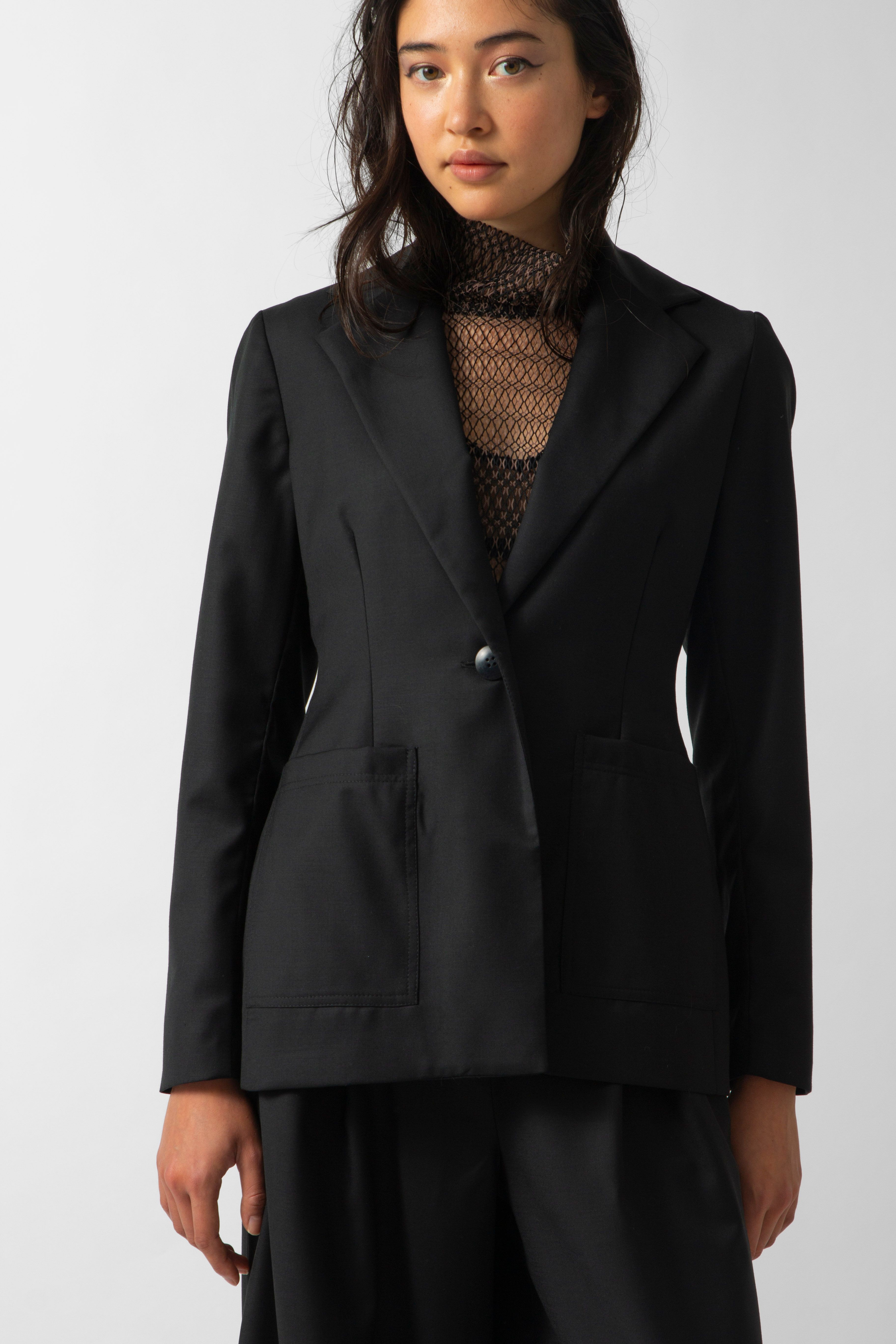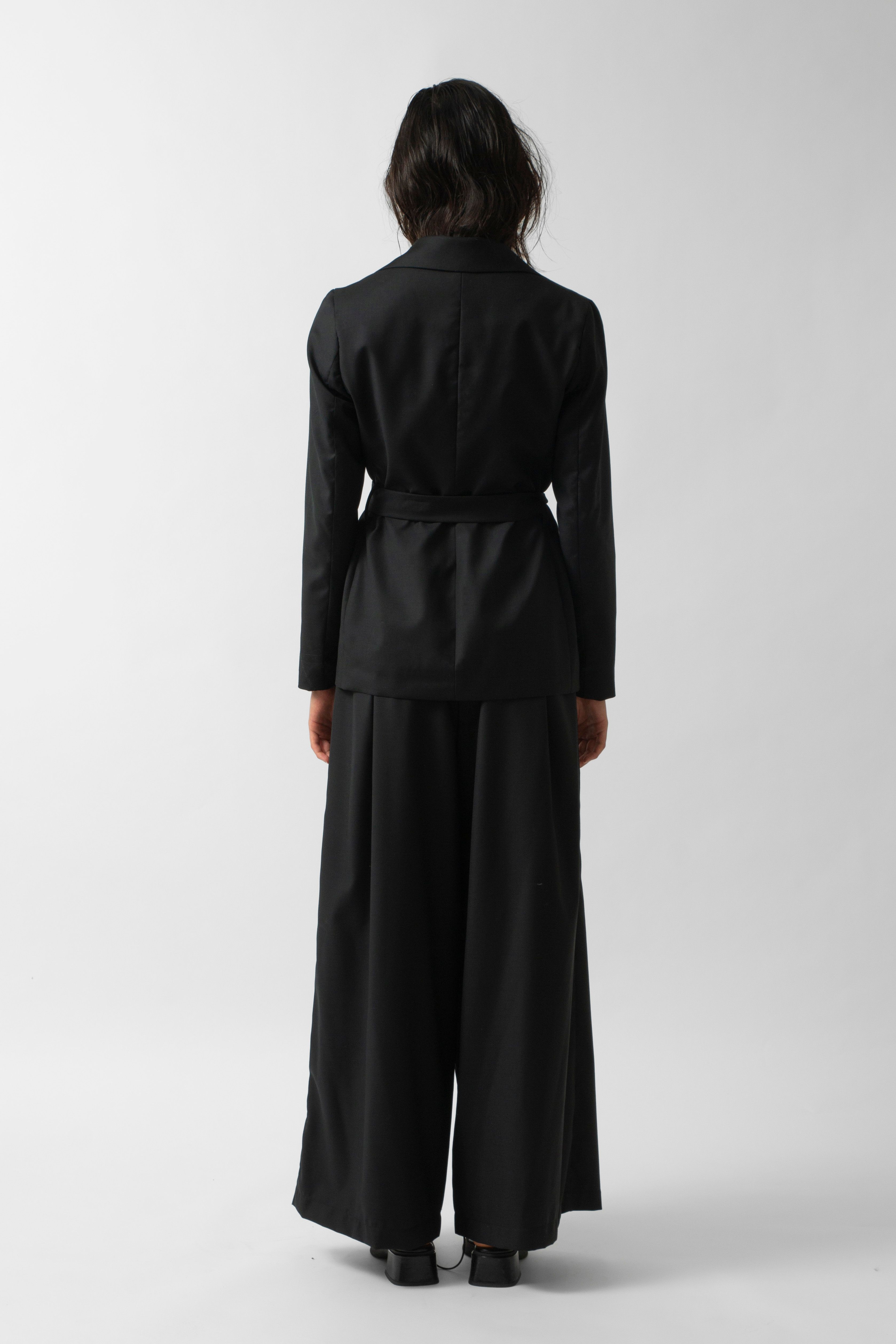 The Sloan Jacket features an elegant subtle hour glass silhoutte. Fits cleanly on the shoulder, front pockets and a Silver D Ring belt that sits on the natural waistline.