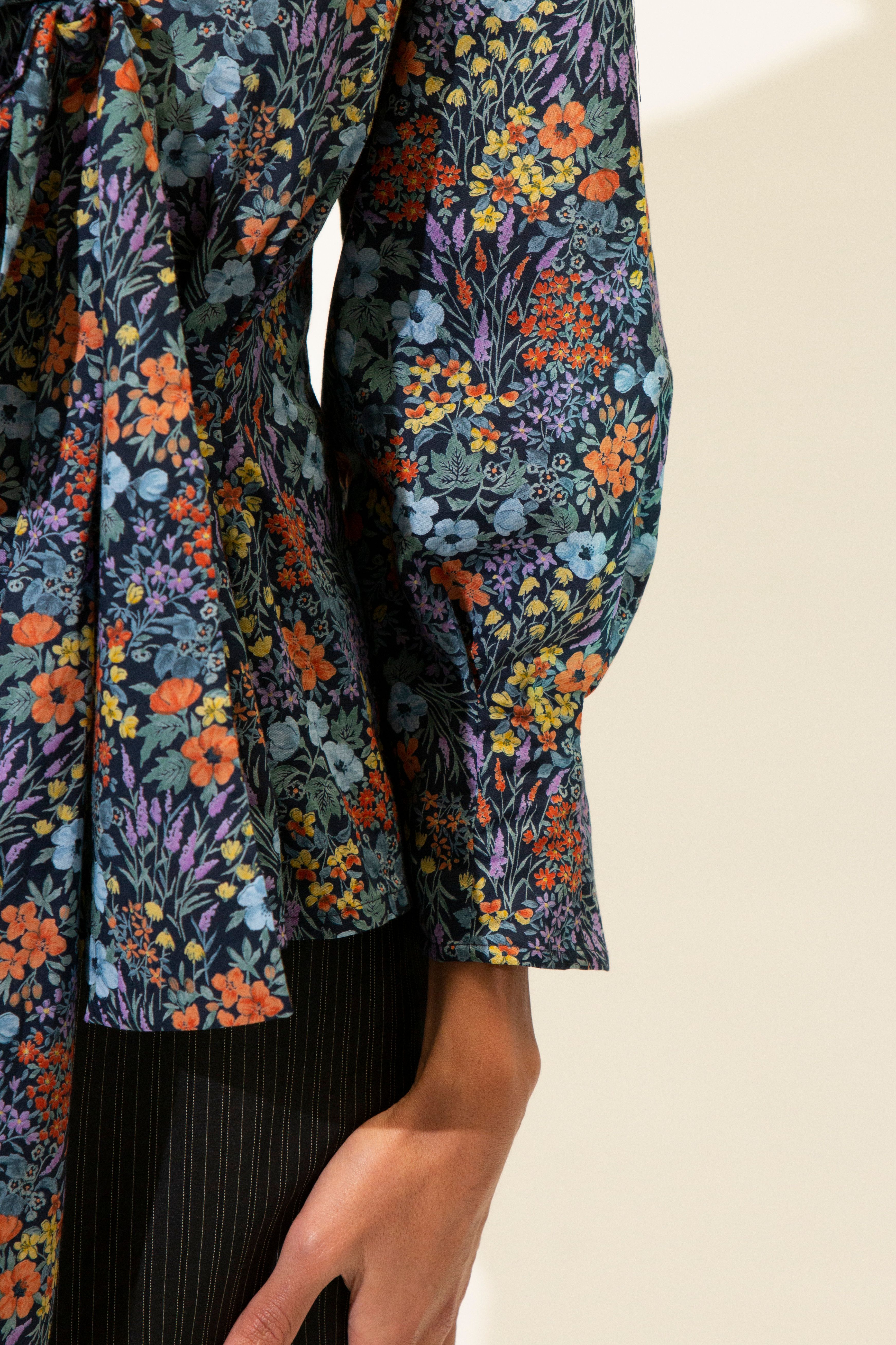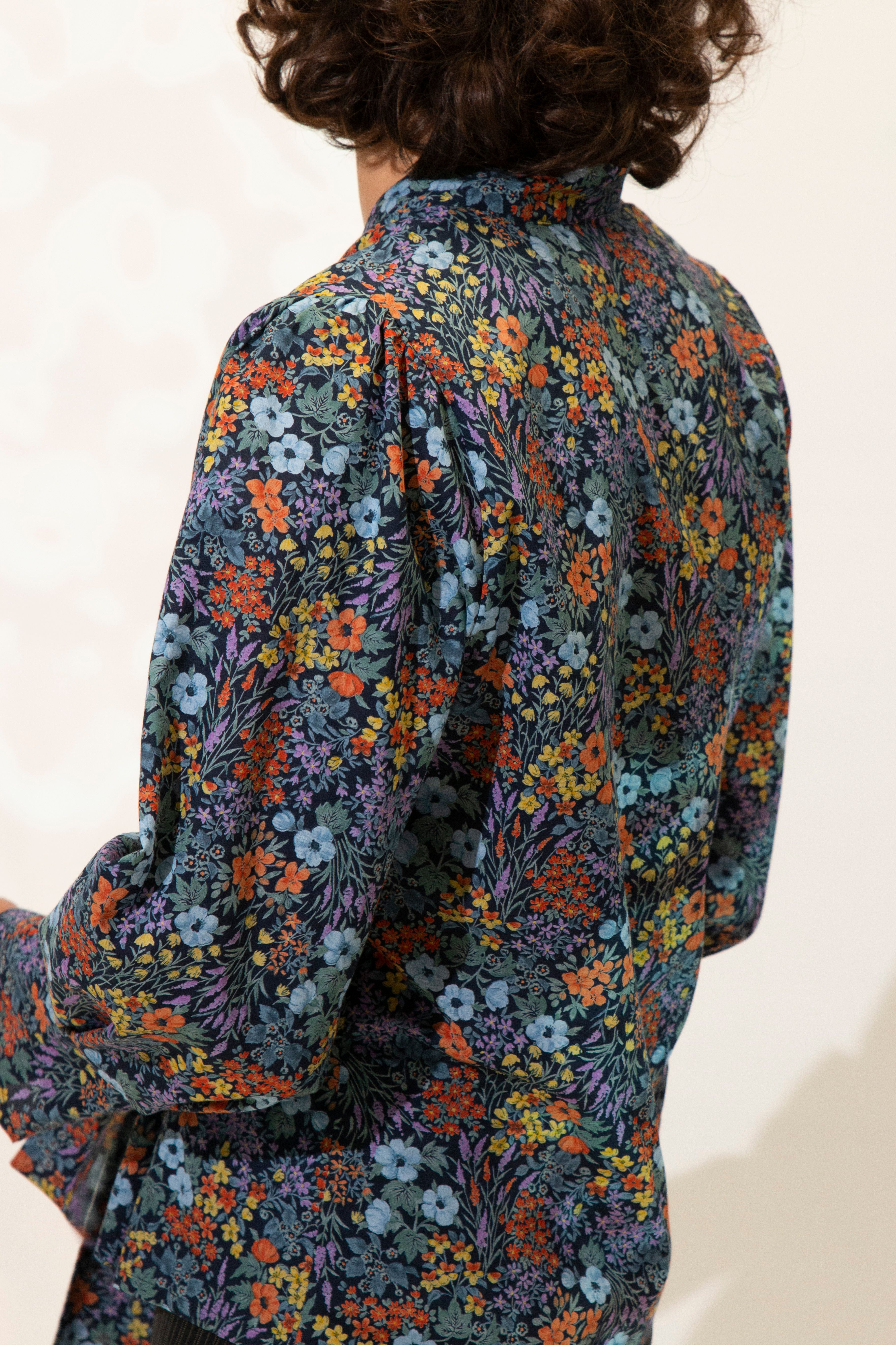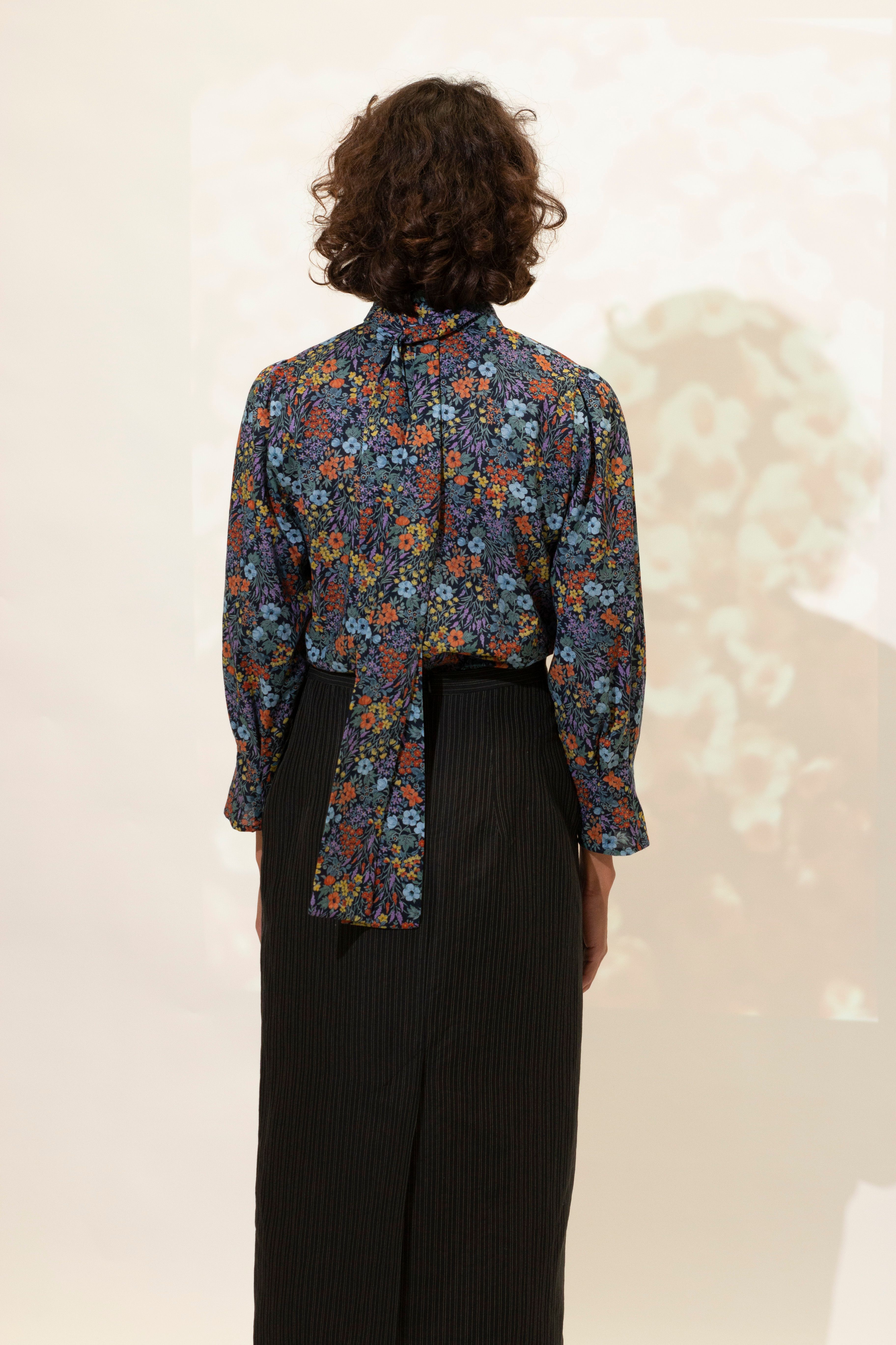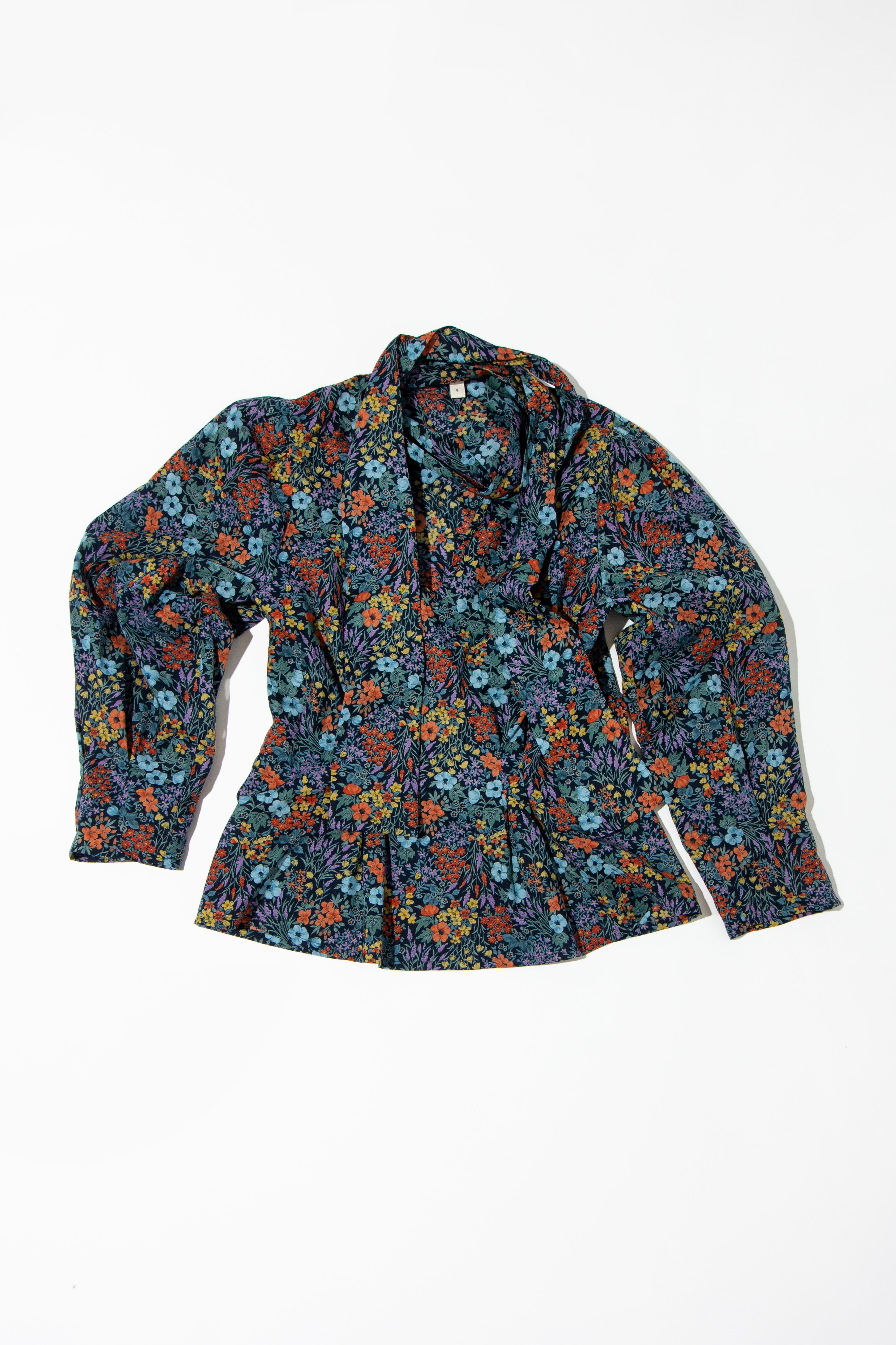 Double tucks at front of the body Hem finishes at the hip V-neck with tie Folded tuck detail on sleeve Made in Aotearoa